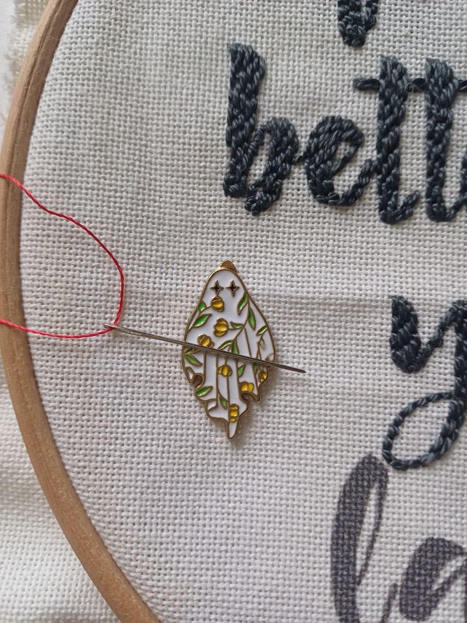 - Add a touch of charm to your stitching projects with our unique magnetic needle minders. This magnetic accessory keeps your needle secure and easily accessible, preventing it from getting lost while you work. Each design is crafted to bring a bit of personality and convenience to your embroidery.