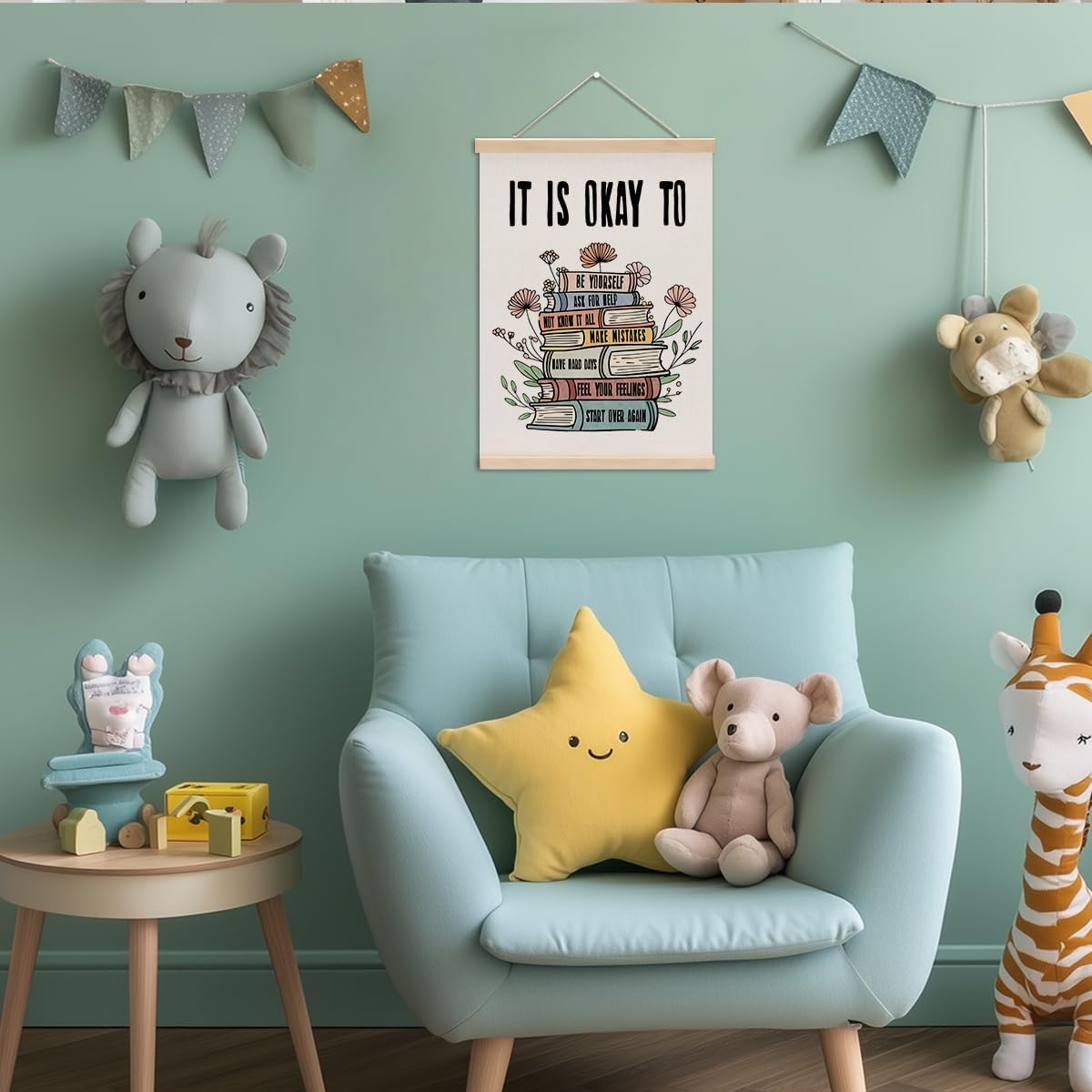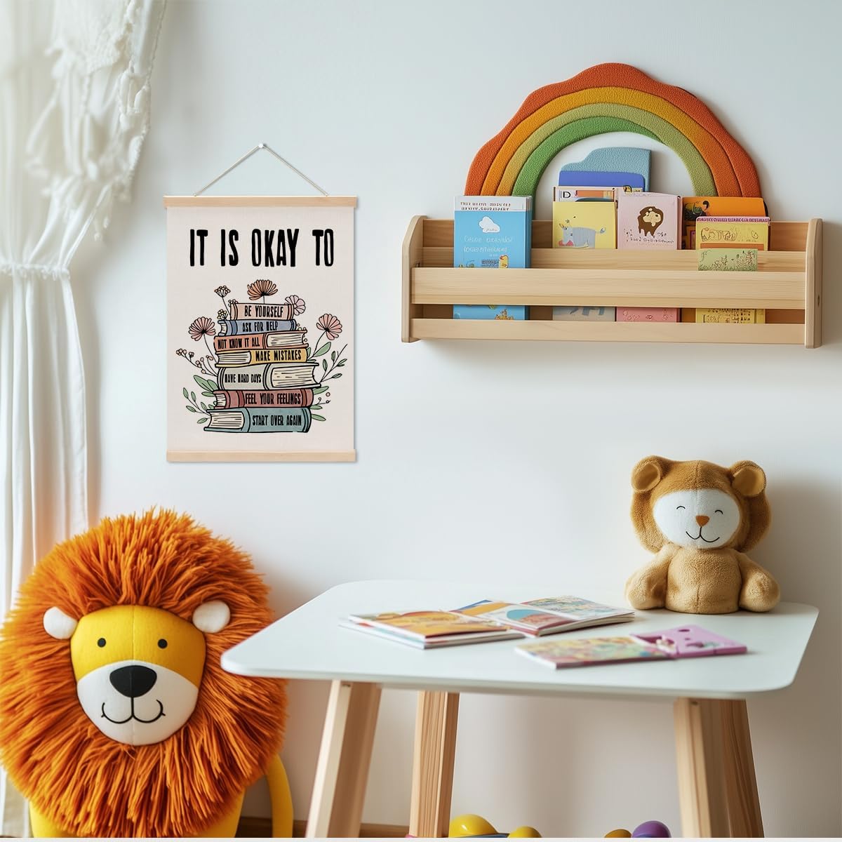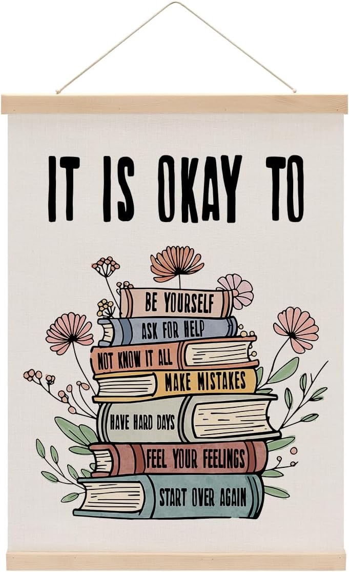 Inspirational Boho Poster Hanger, Positive Affirmations Wall Decor, Educational Posters Wall Art Wall Hanging Banner Classroom Counseling Therapy Office Nursery Apartment Bedroom Decor