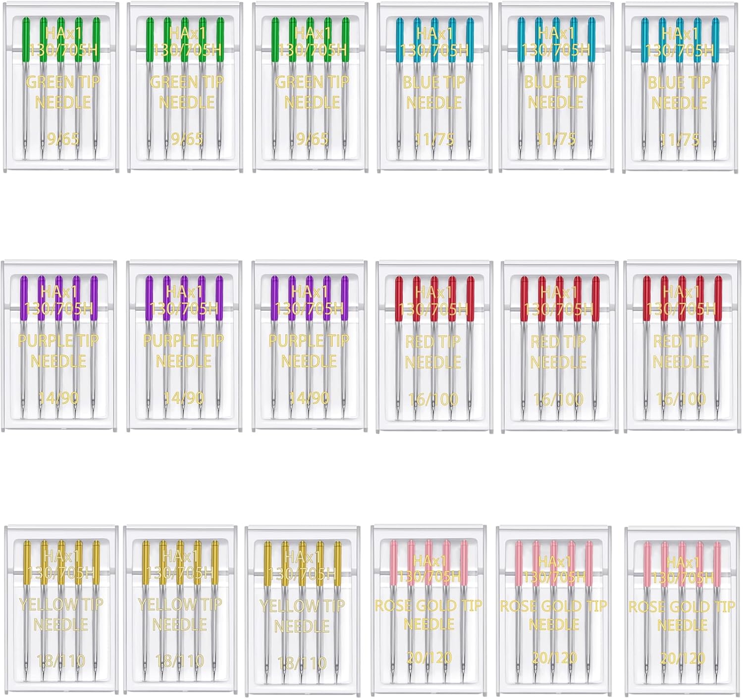 - Package includes: 90pcs=18boxes(5pcs/box) sewing machine needles in All Size(9, 11, 14, 16, 18, 20). Three boxes of each size.