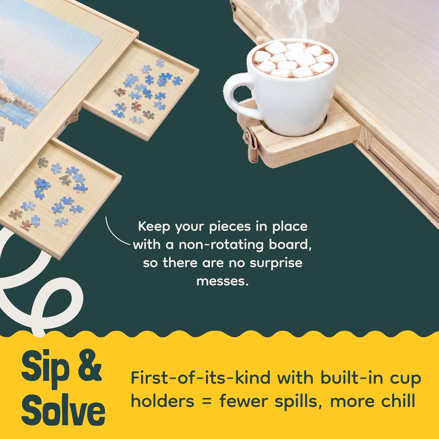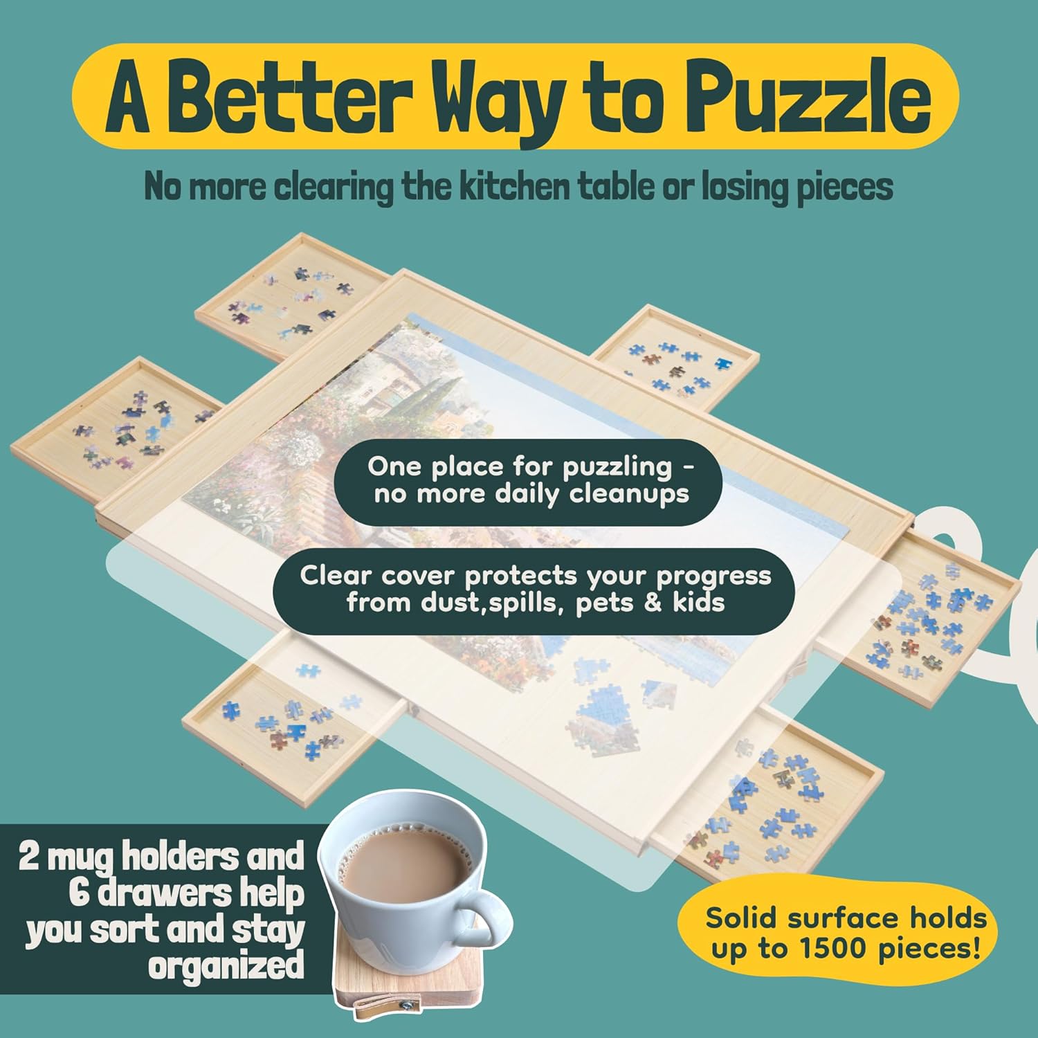 - Organized Puzzle Play: Optimize your puzzle organization with six drawers, allowing you to categorize pieces by color, edge, or pattern. This thoughtful arrangement eliminates clutter, ensuring a smooth and satisfying experience from start to finish
