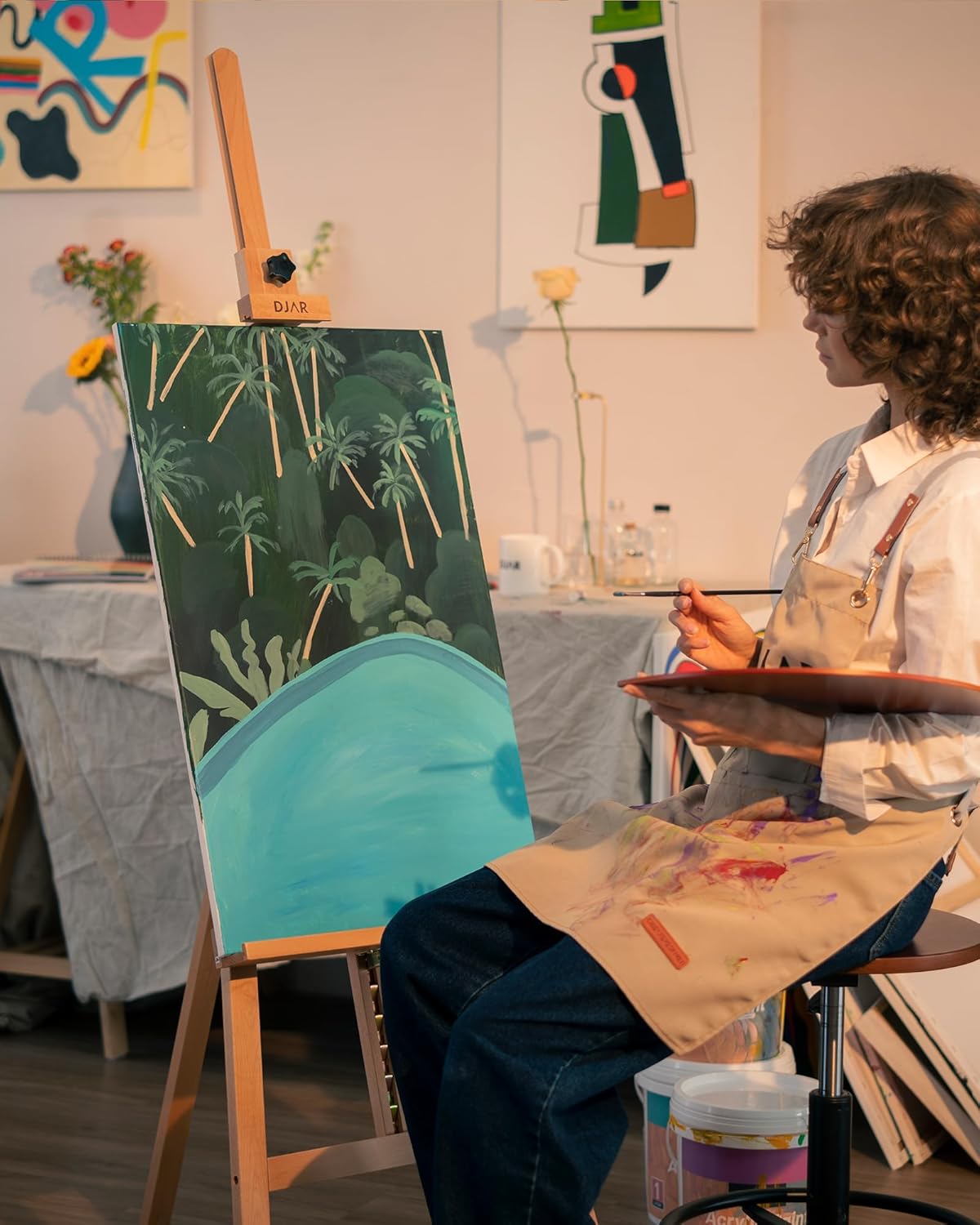 DJAR A Frame Wooden Art Easel for Painting, 57’’-76’’ Adjustable Height, Hold Canvas up to 43’’, Floor Easel Stand for Adults, Beginner