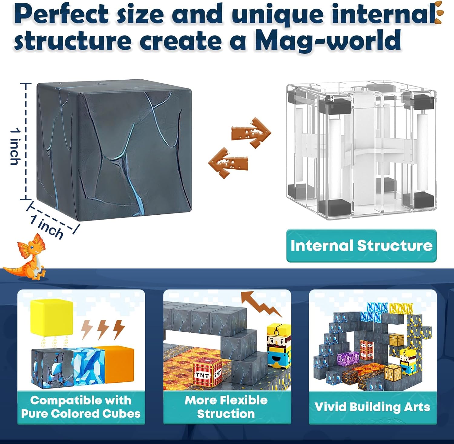 - 【COMPATIBLE & EXPAND MAGWORLD】Our magnet blocks construction toys is kid-friendly with rounded edges and a size ideal for small hands. Compatible with all Mine Magnet World blocks, offering endless possibilities for creativity. Each set includes an idea booklet to inspire exploration within their magworld. Easily expand your existing forests and dino sets to create larger and more intricate scenes. Perfect magnetic blocks for kids ages 4-8 to play safely and creatively.