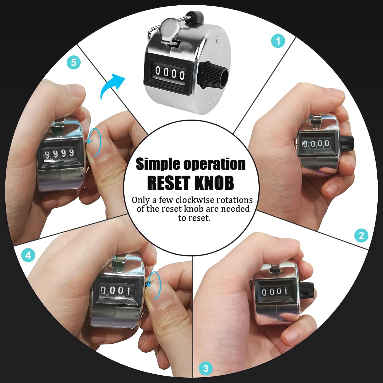 - Easy to Use: The counter counts from 0 to 9999, with a reset knob, which supports immediate reset. It can be easily and quickly reset by rotating a few times clockwise, without the need to cycle display 9999. Powerful and easy to operate. What is the most important thing about the counter clicker!