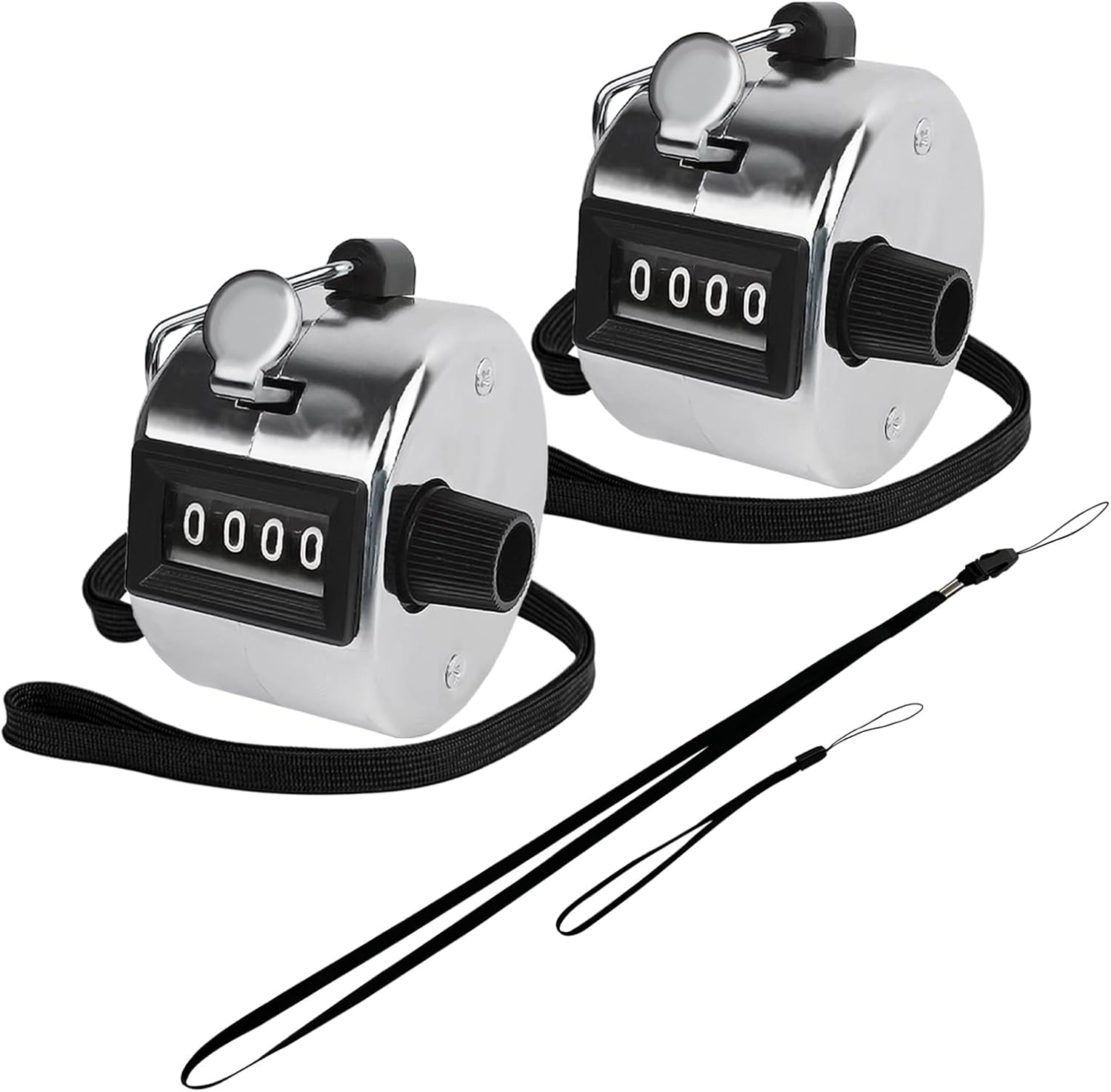 GDMINLO 2PCS Metal Hand Tally Clicker Counter, 4-Digit Number Count Clicker with Metal Case Mechanical Counter for Coaching, Knitting, Lap, Fishing, Golf and Row with 2-Nylon Lanyard,Silver