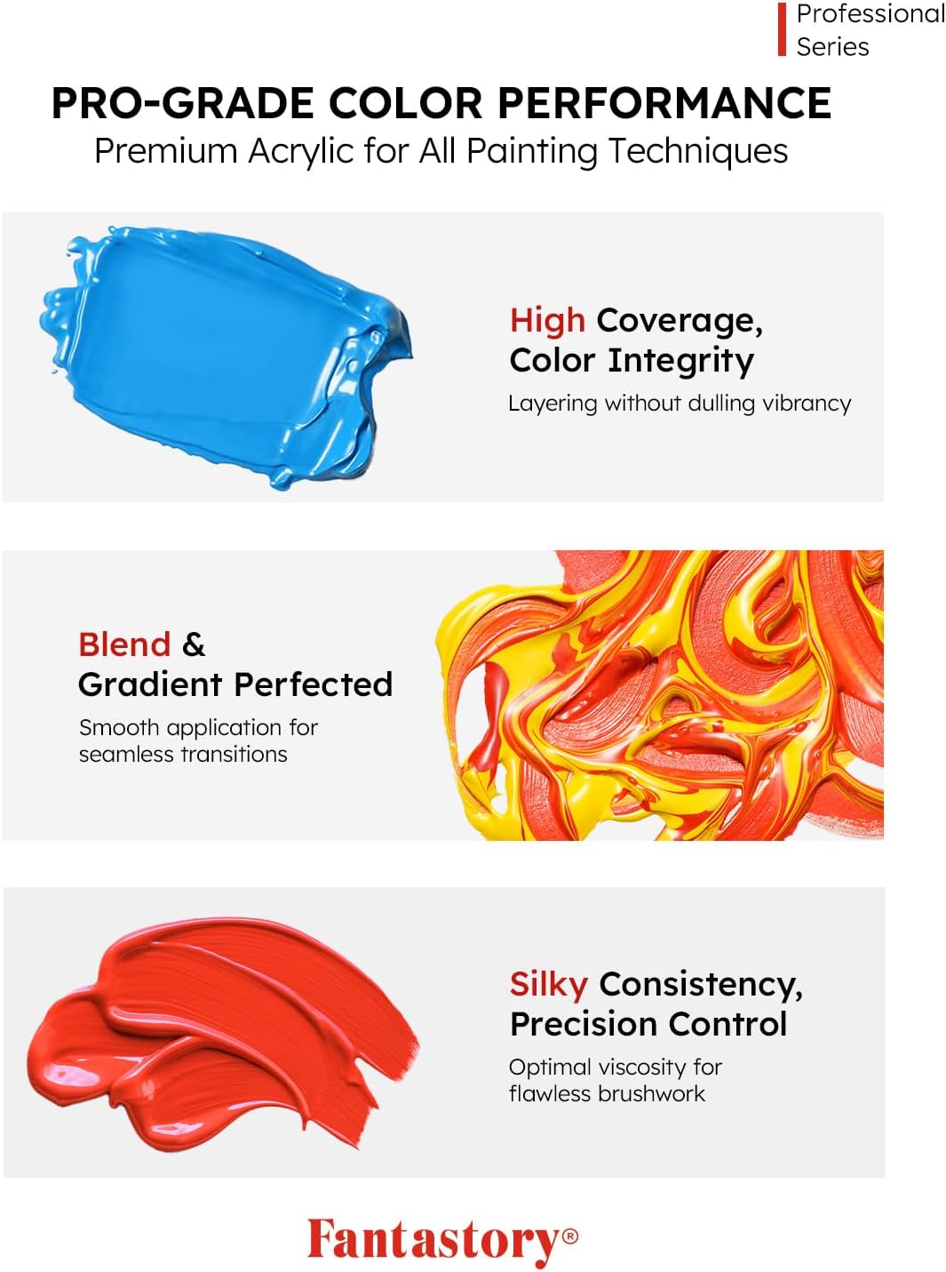 - Superior Coverage Performance-With an optimal density of 1.2g/cmยณ, our professional acrylics deliver unmatched covering power that dramatically improves painting efficiency by eliminating the need for multiple layers, while substantially reducing overall paint usage.