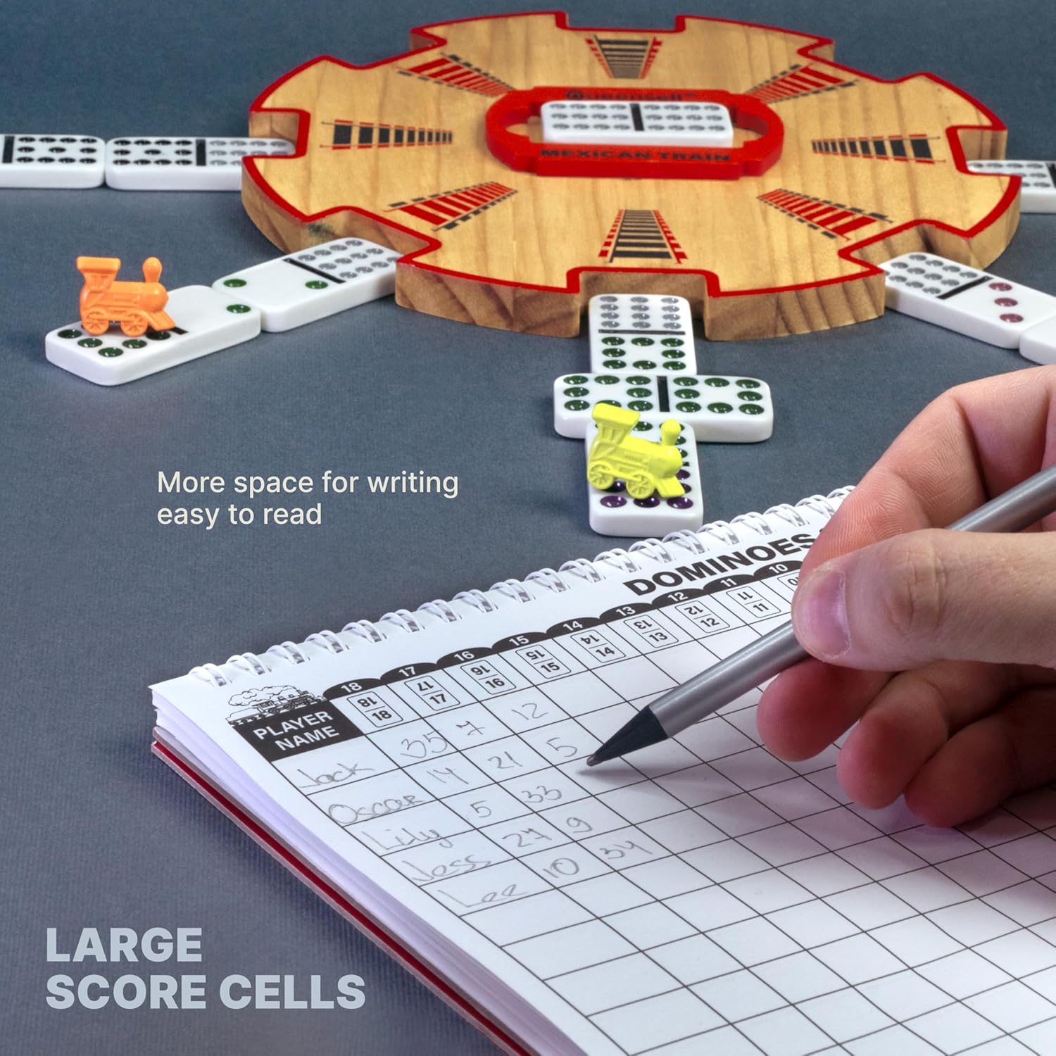 Extra Large Mexican Train Score Pads 11.3x7.9 in – 50-Page Mexican Train Accessories for Classic Domino Game – Mexican Train Score Sheets for Easy Game Tracking