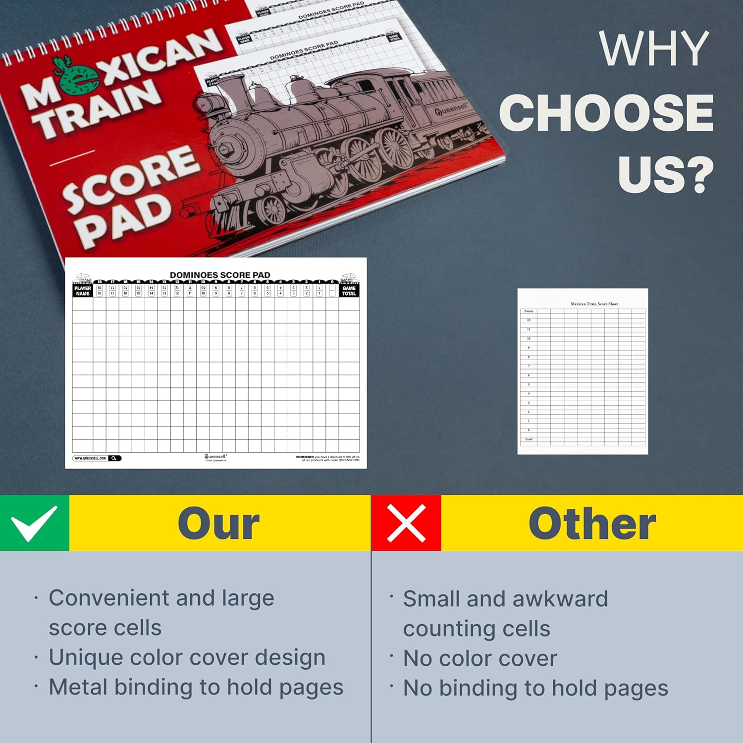- Perfect for Domino Lovers – A must-have mexican train dominoes score pad for keeping score in mexican train and other domino games