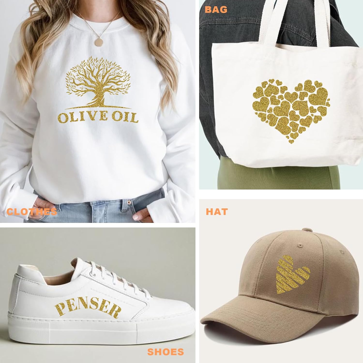 - 【Multiple uses】 Glitter HTV Not just for shirts, this vinyl can be used on a variety of fabrics and items such as tote bags, hats, and more. Let your creativity run wild