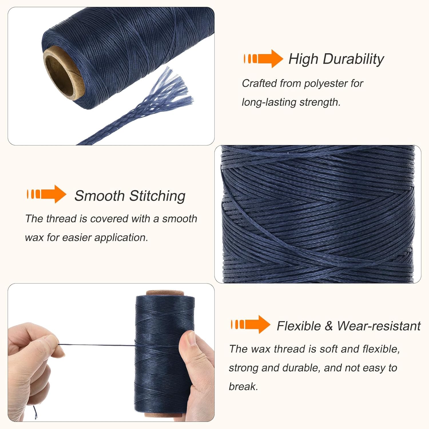 - 210D flat waxed thread is made of multiple polyester threads braided and covered with wax, which is tough and durable, not easy to break, and has high tensile strength; The waxed cord is soft and not easy to deform. The perforated sewing is smooth and flexible. It can withstand high temperatures and is easy to seal, cut, knot, and sew; it can be used for most leather DIY projects; Rich in colors, made of braided polyester, the thread is lightly waxed and coated, waterproof and non-fad