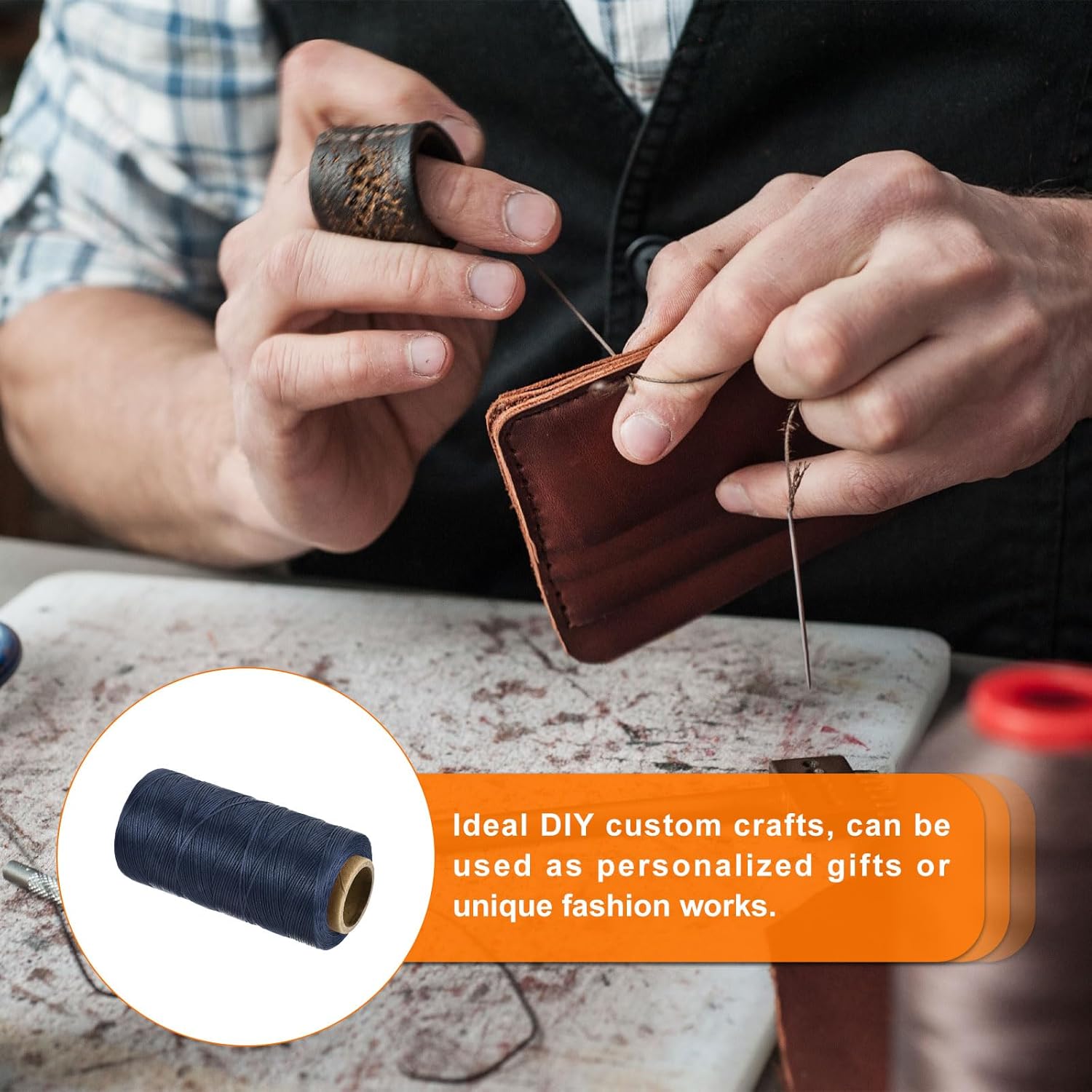MECCANIXITY Waxed Thread,197 Yard 1mm 210D Flat Wax Thread Polyester Waxed String for Leather Sewing Hand Weaving Book Binding Home Decoration,Deep Blue