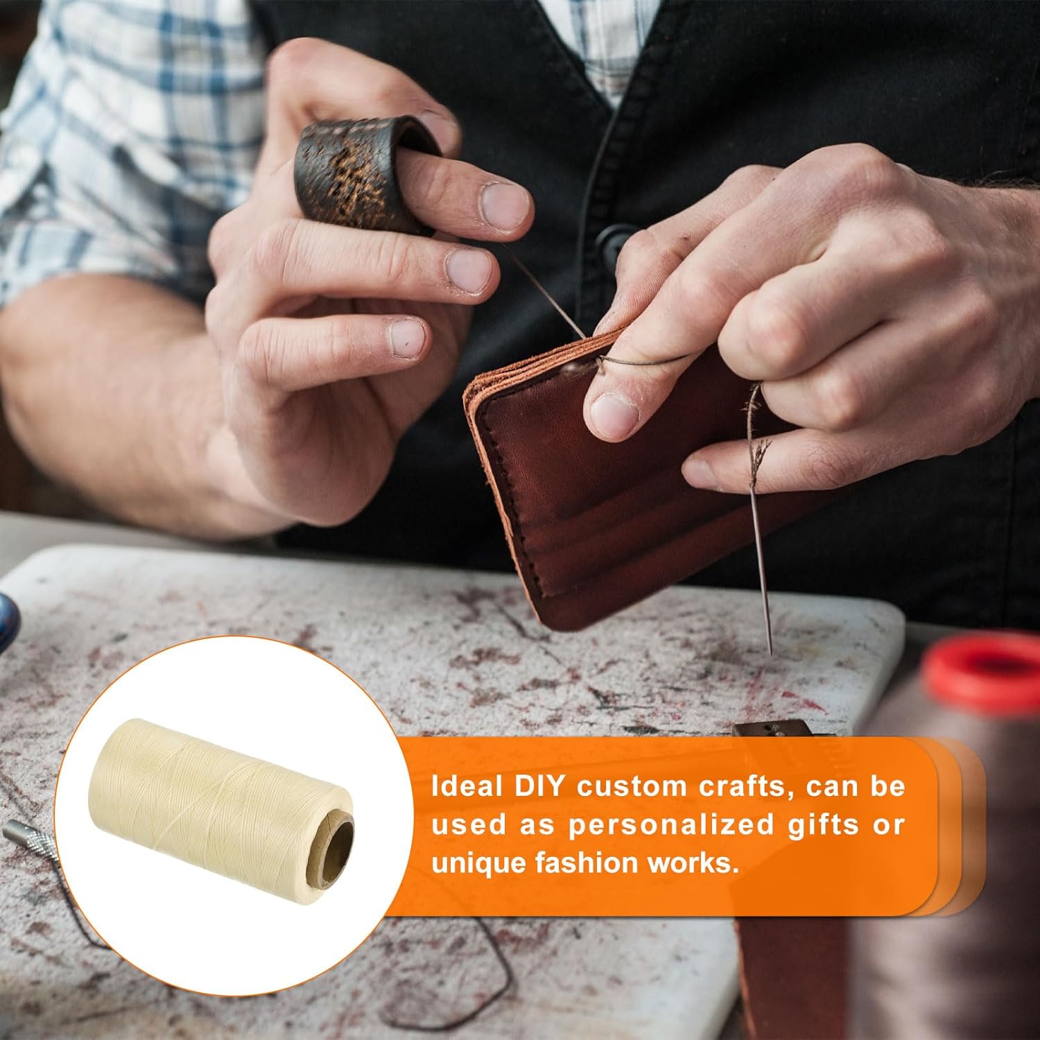 MECCANIXITY Waxed Thread,284 Yard 0.8mm 150D Flat Wax Thread Polyester Waxed String for Leather Sewing Hand Weaving Book Binding Home Decoration,Cream White