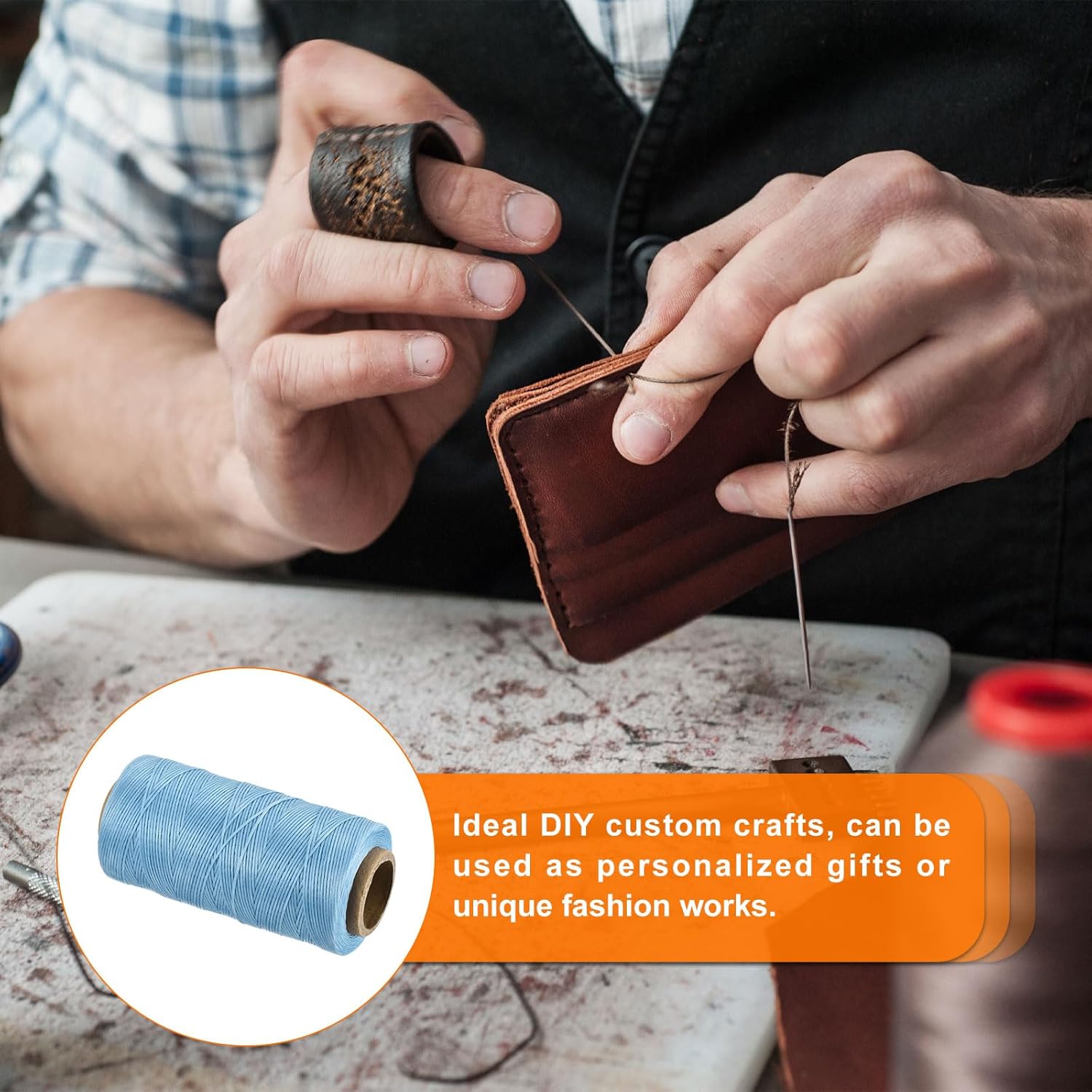 MECCANIXITY Waxed Thread,197 Yard 1mm 210D Flat Wax Thread Polyester Waxed String for Leather Sewing Hand Weaving Book Binding Home Decoration,Light Blue