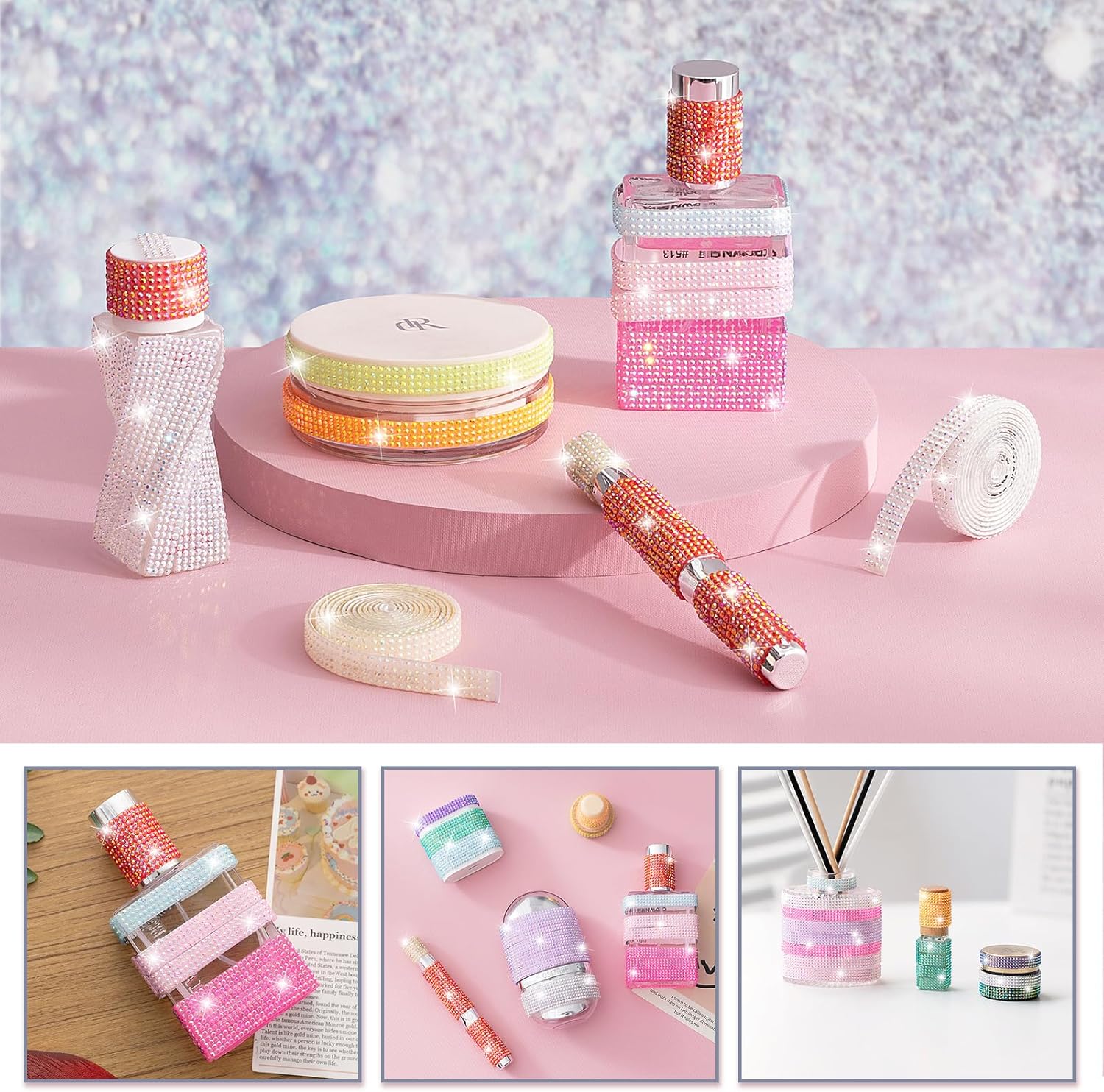- ă12 Rolls Rhinestone Tape Self Adhesiveă: Dive into the world of creativity and elegance with our Self Adhesive Crystal Rhinestone Ribbon, available in 12 distinct colors. Each roll bedazzle strip 0.39 inches in width with four rows of sparkling rhinestones, spanning a length of 1 yard. With a total of 12 yards, these bedazzling strips is versatile enough to meet a variety of decorative needs in everyday life.