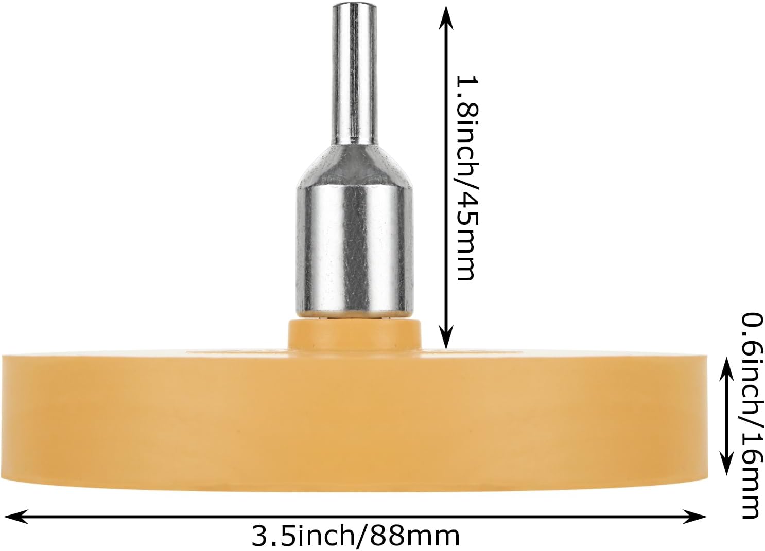 - Szie Information: Diameter: 3.5 inch/88 mm; Thickness: 0.6 inch/16 mm; Package includes: 8 x Adhesive Eraser Wheel with Adapter