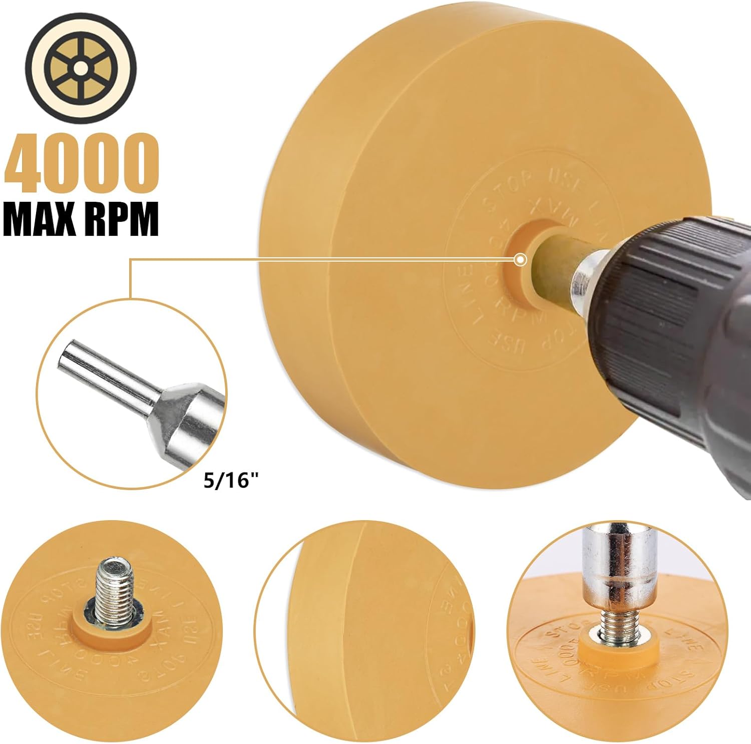 - Rubber Adhesive Eraser Wheel: Decal eraser wheel is made of high-quality soft rubber, safe to use, not scratch or damage the car's paint; Solid round design, fast and efficient, reduces the time spent on the removal