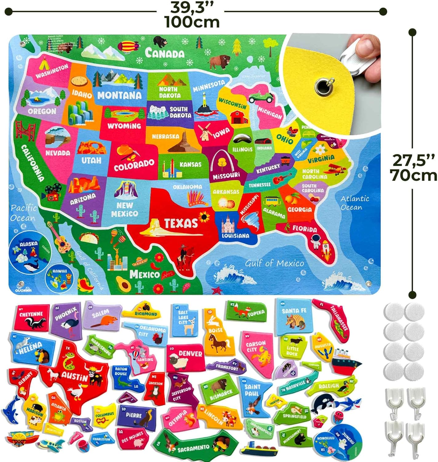 - USA-THEMED FELT BOARD: our USA felt board for toddlers is designed to captivate and educate with its vibrant scenes and 61 velcro elements; these elements allow children to create endless stories, fostering creativity and critical thinking skills