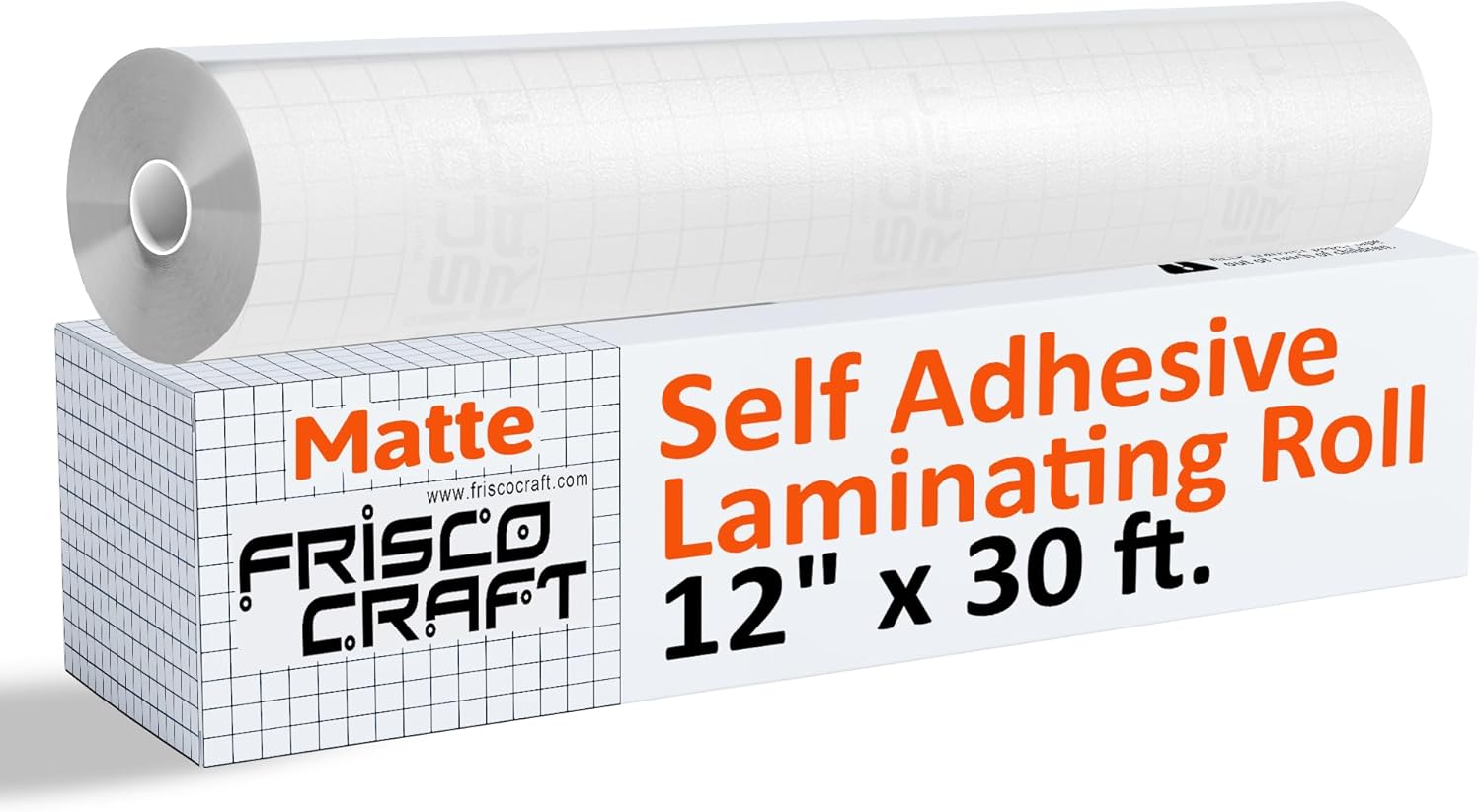 Frisco Craft Matte Clear Self Adhesive Laminating Roll - Self Laminating Sheets for Decals, Sticker, Photos & More - No Heat Sealing, Matte, Clear Sheets (12" x 30 ft)