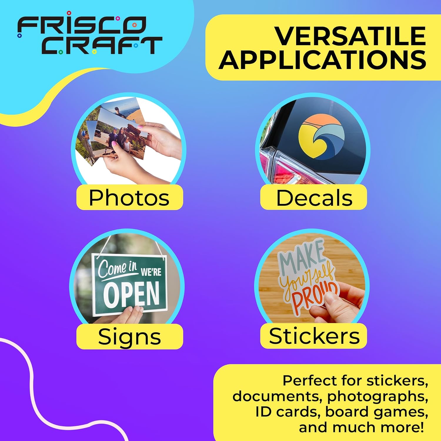 - EASY-TO-USE SELF-ADHESIVE LAMINATING SHEETS: No heat or special tools needed—simply peel and stick! Frisco Craft matte clear vinyl laminate adheres securely to various surfaces, ensuring a smooth, bubble-free application every time.