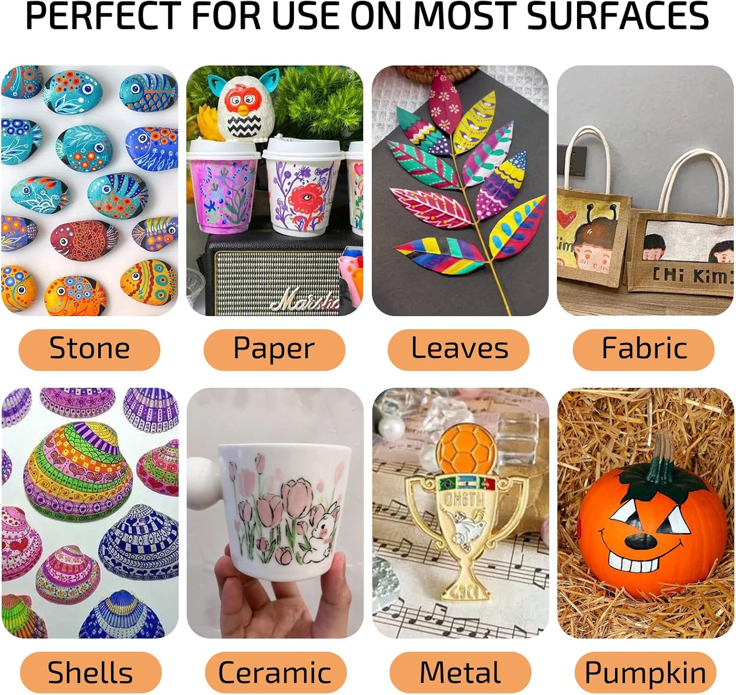 - WIDELY APPLICABLE: Our paint marker pen works on various surfaces like rock, paper, canvas, ceramic, eggs, glass, wood and more, it can provide exceptional stacking ability adhesion and color vibrancy