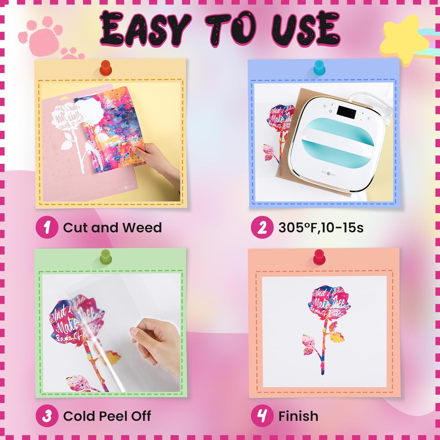 - 【Compatibility】Our HTVRONT heat transfer vinyl is compatible with Silhouette and major cutting systems, ensuring easy application. Use the Teflon sheet and color stacking guide to create layered designs. Professional-grade results are guaranteed. Our support team is available to assist at any time.
