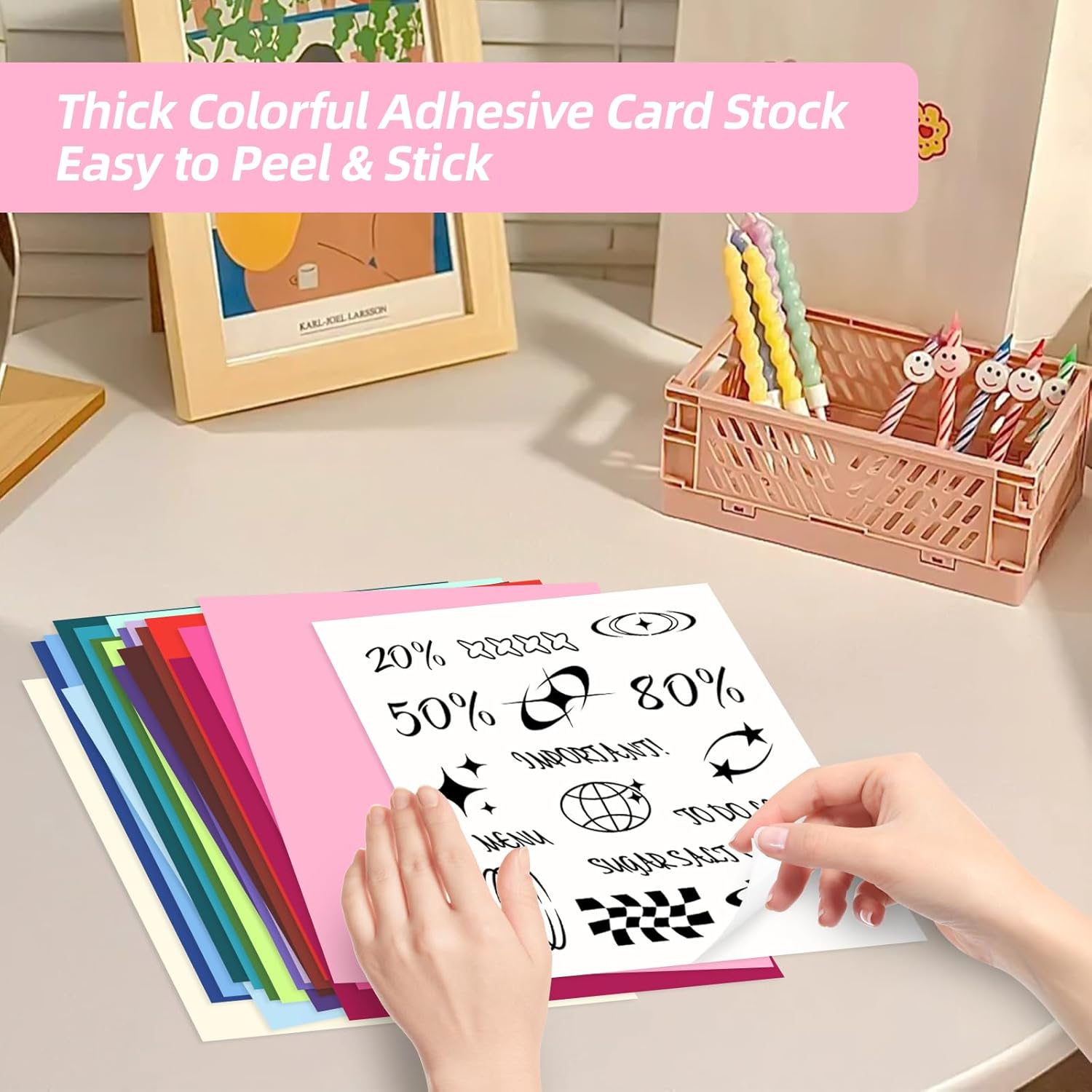 - 40 SHEETS THICK SELF ADHESIVE CARD STOCK PAPER: Made of 250gsm/92lb Cardstock, With Adhesive Backed Paper, which is Compatible with Cricut to Make Stickers/Labels. Matt Finish Enables You to Write / Print