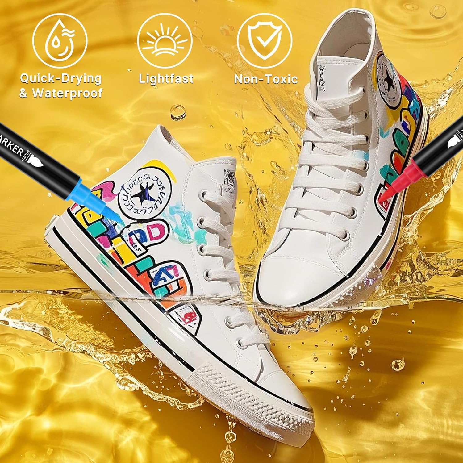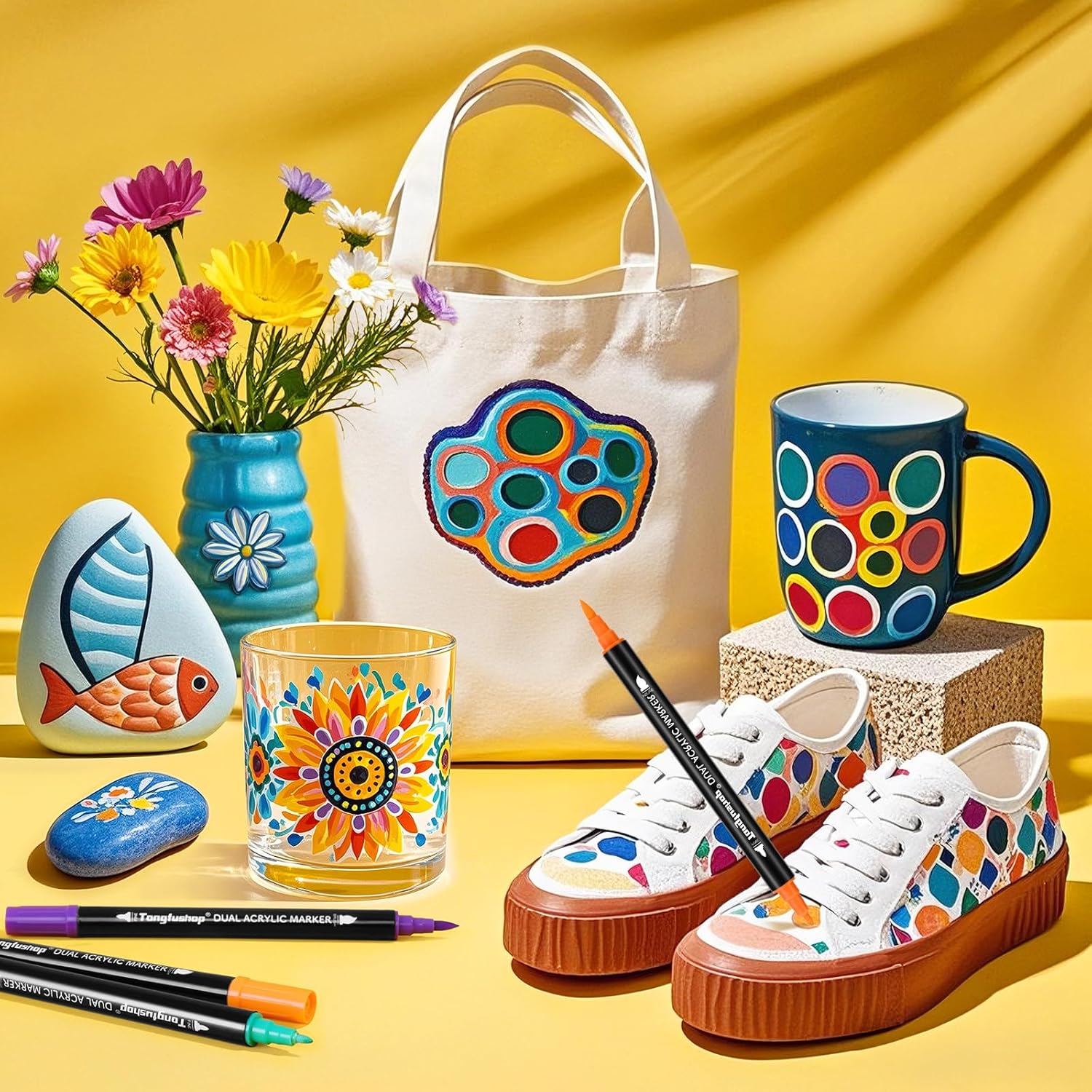 - 🌿【Non-Toxic Certified: Multi-Surface Compatibility】Certified non-toxic and low-odor, these water-based acrylic pens are safe for artists across all age groups. Use these adaptable paint markers on canvas, ceramic, fabric, wood, and other common surfaces without primer.