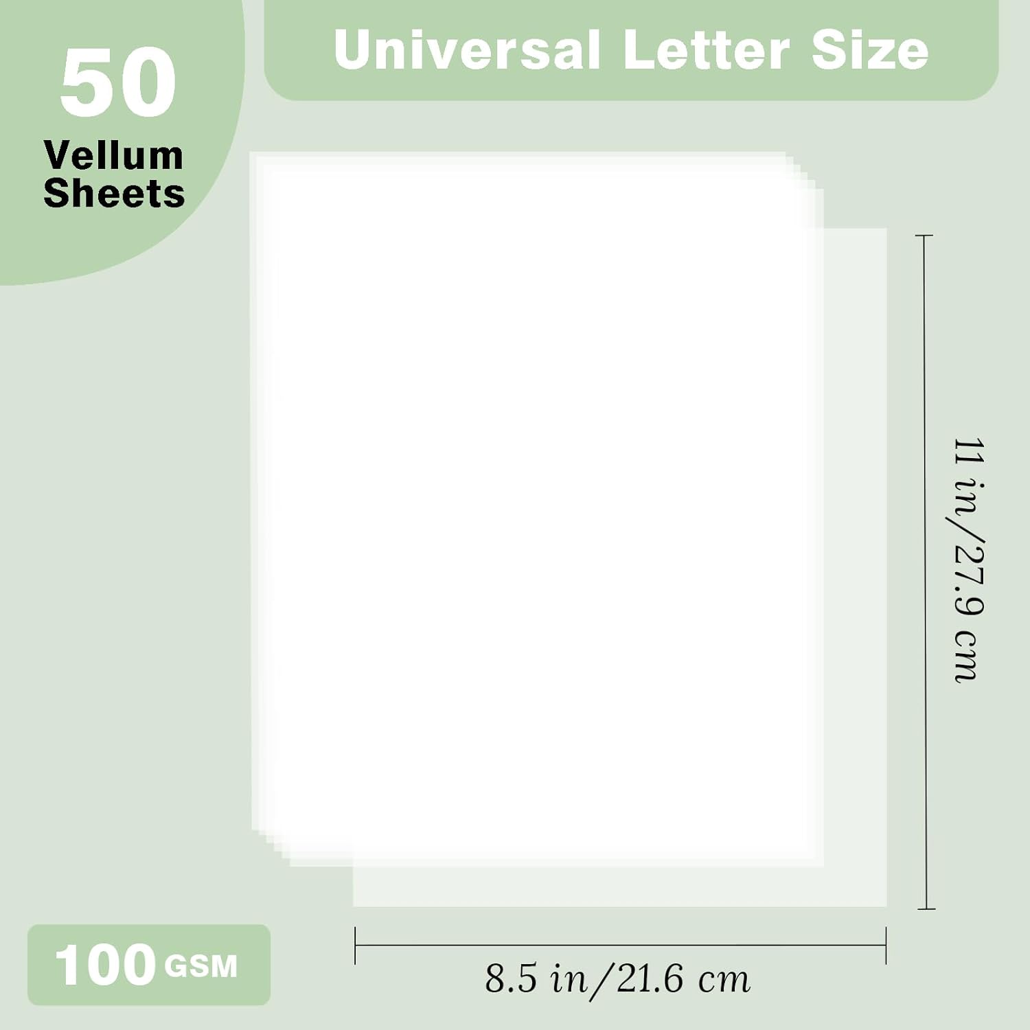 - HIGH QUALITY: Made from 100 GSM premium translucent vellum paper, this 8.5 x 11 inch decorative vellum paper is wrinkle-resistant, durable, and perfect for tracing, drawing, printing, or creating wedding invitation belly bands.
