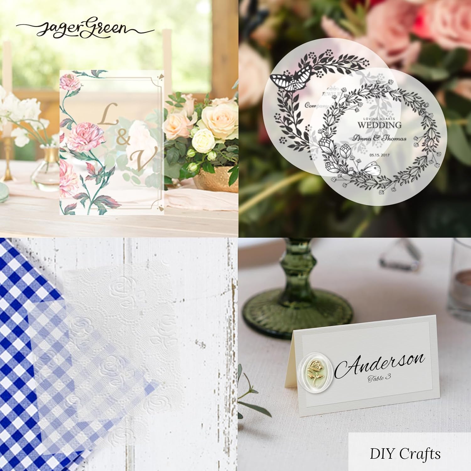- PERFECT FOR DIY PROJECTS: Create stunning wedding invitations, baby shower decor, or card overlays with JagerGreen vellum paper. Its soft translucency adds sophistication to thank-you cards, envelopes, or scrapbook embellishments.