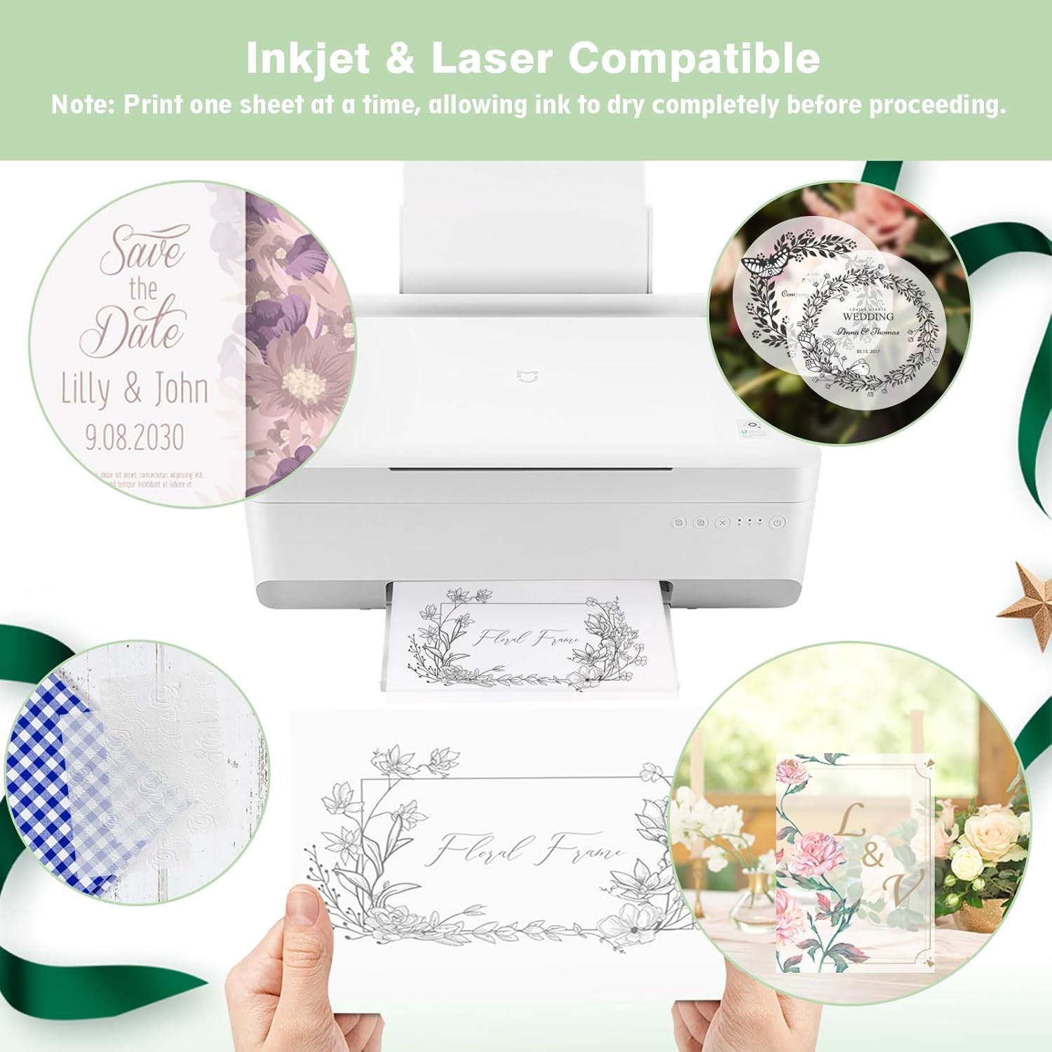 - PRINTER FRIENDLY: Compatible with most inkjet and laser printers for custom creations. Print one sheet at a time, allowing ink to dry completely before proceeding. Ideal for personalized 5x7 vellum jackets, vellum wrap, and crafting projects.