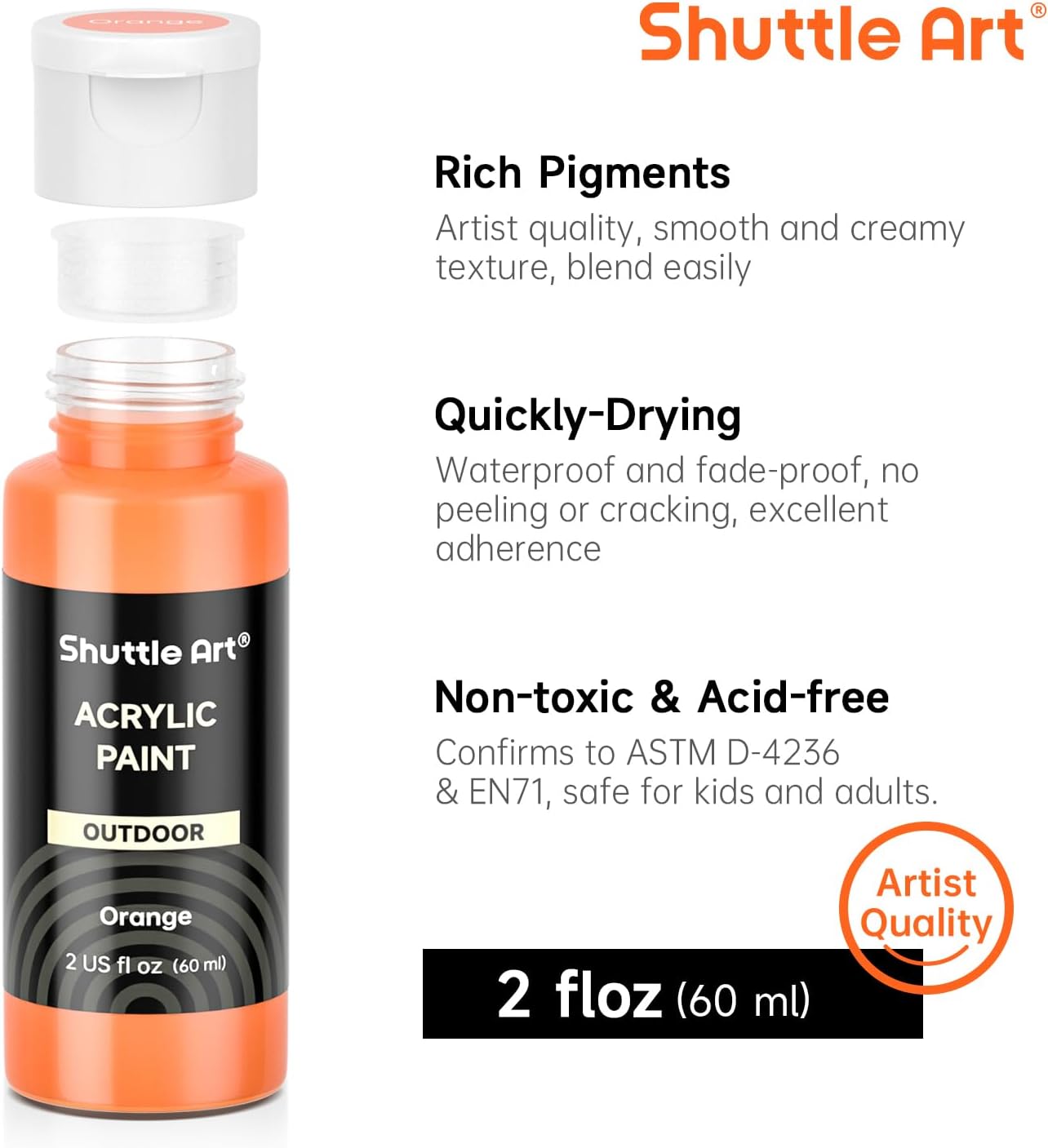 - EXCEPTIONAL OUTDOOR PERFORMANCE: Shuttle Art outdoor acrylic paints offer superior water resistance and coverage, ensuring your artwork stays vibrant and intact in outdoor conditions, from sun exposure to rain. Compared to regular acrylic paints, specialised outdoor paints provide better waterproof, fade-resistant, and UV-resistant properties