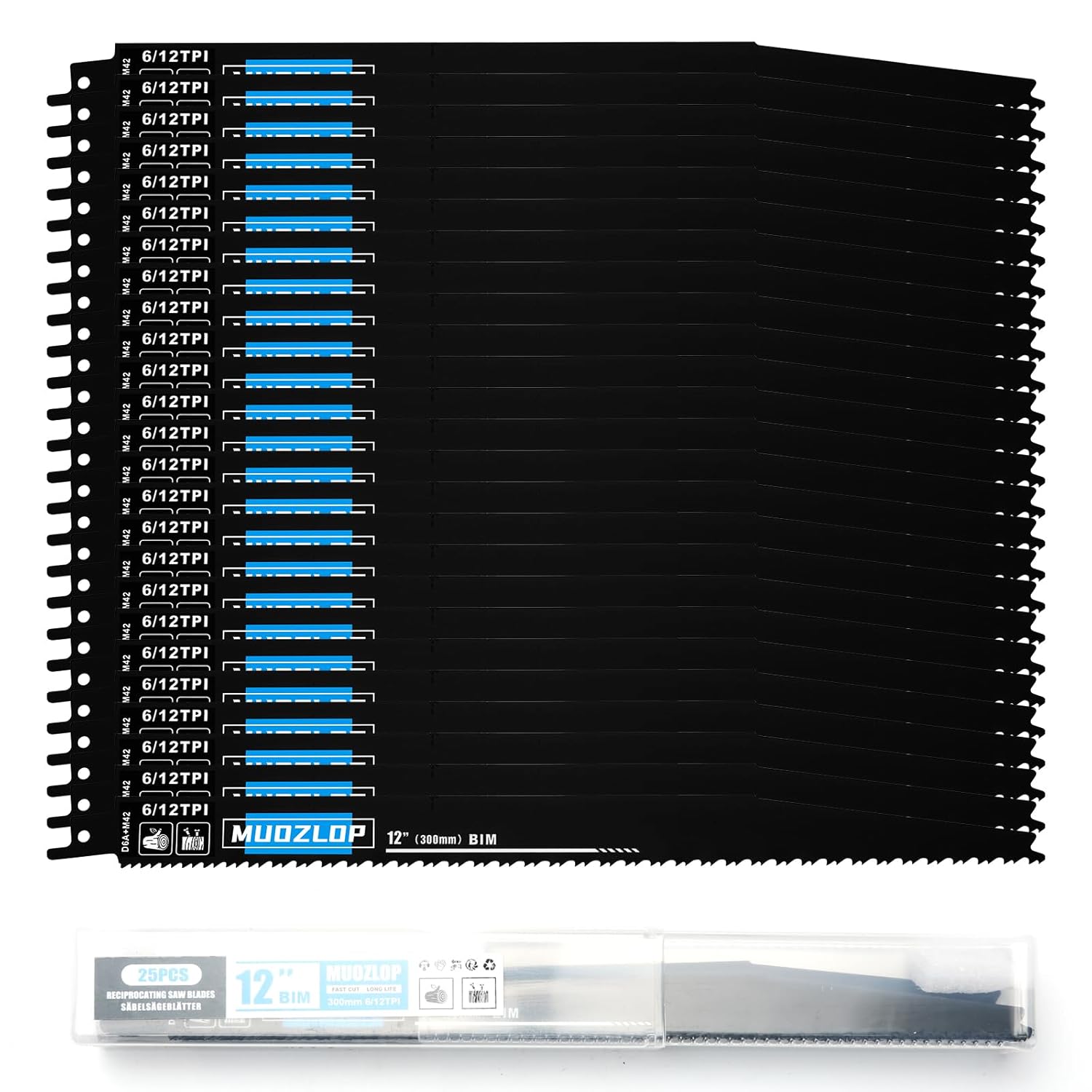 25 Pack 12 inch Reciprocating Saw Blades Set,6/12 TPI High Carbon Saw Blades, Woodcutting Saw Blades with Organizer Case (25, 6/12TPI/300mm)