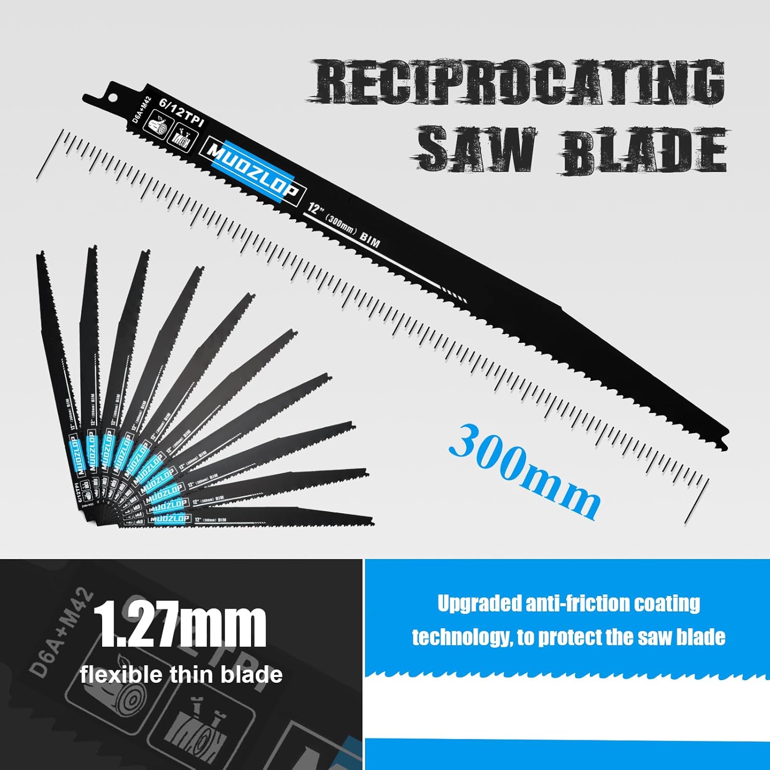 10Pack 12 inch Reciprocating Saw Blades Set,6/12TPI High Carbon Saw Blades, Woodcutting Saw Blades with Organizer Case (10, 6/12TPI/300mm)
