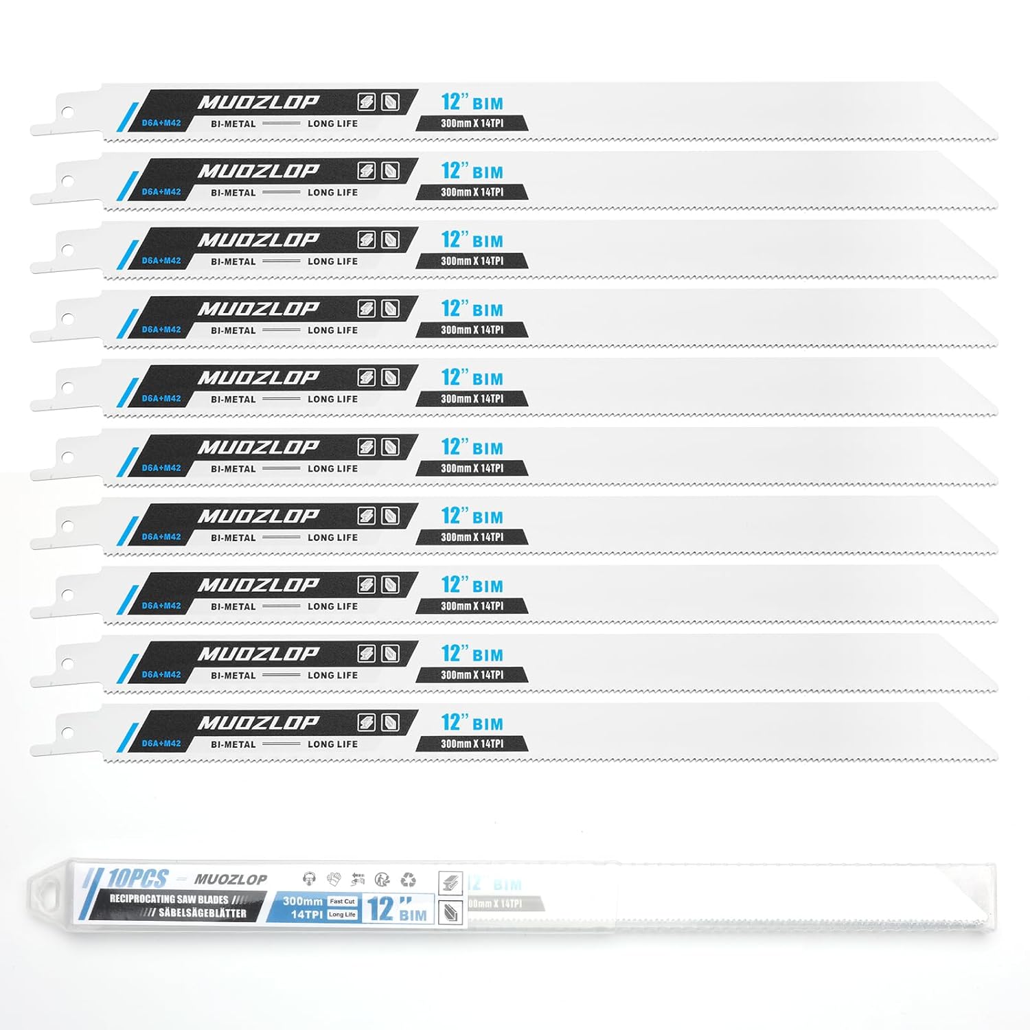 10 Pack 12 inch Reciprocating Saw Blades Set,14TPI High Carbon Saw Blades, Metal Saw Blades with Organizer Case (10, 14TPI/300mm)