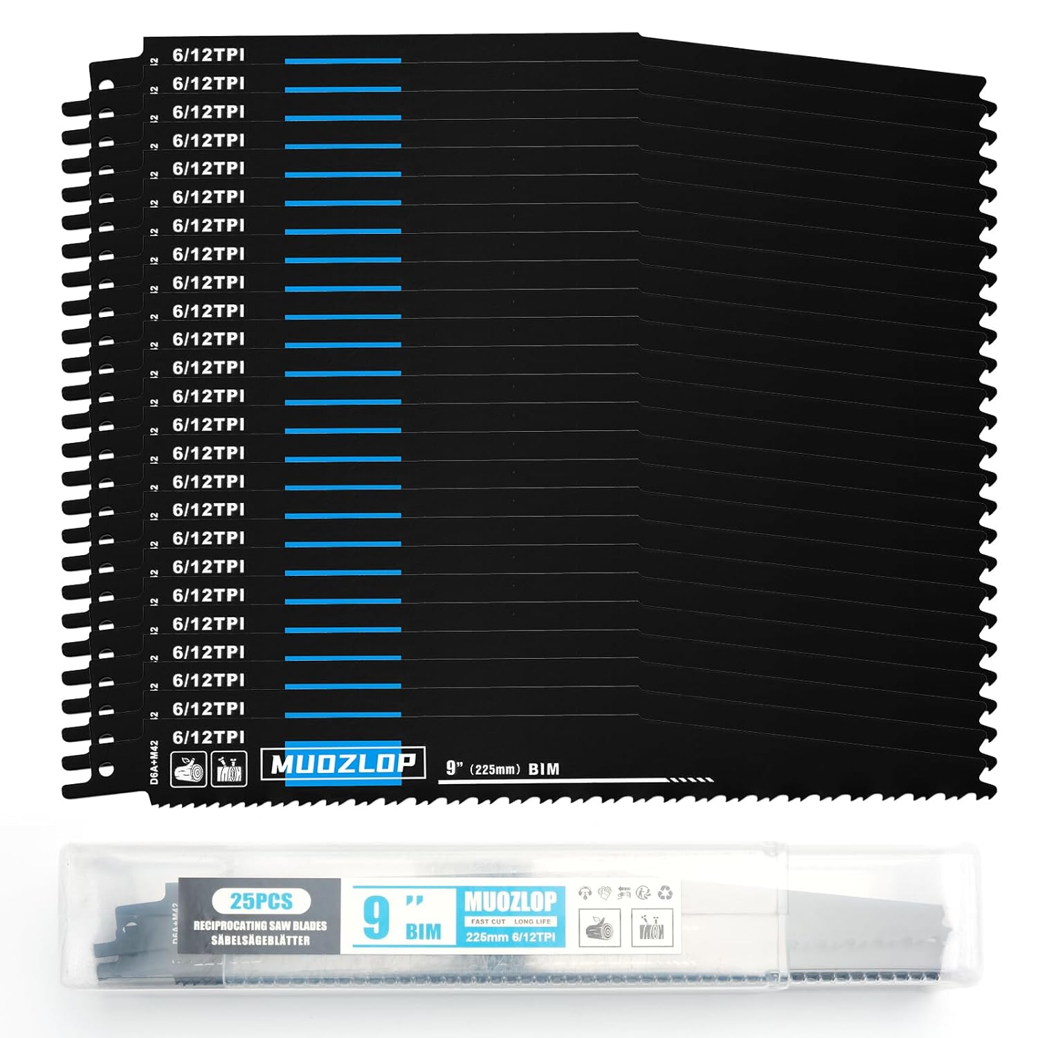 25 Pack 9 inch Reciprocating Saw Blades Set,6/12TPI High Carbon Saw Blades, Woodcutting Saw Blades with Organizer Case (25, 6/12TPI/225mm)
