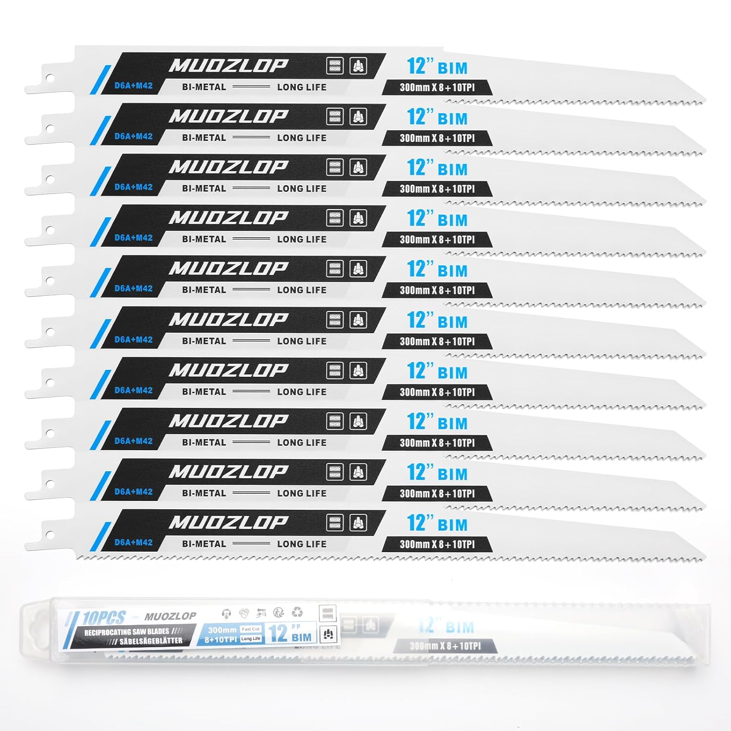 10 Pack 12 inch Reciprocating Saw Blades Set,8+10 TPI High Carbon Saw Blades, Metal Saw Blades with Organizer Case (10, 8+10TPI/300mm)