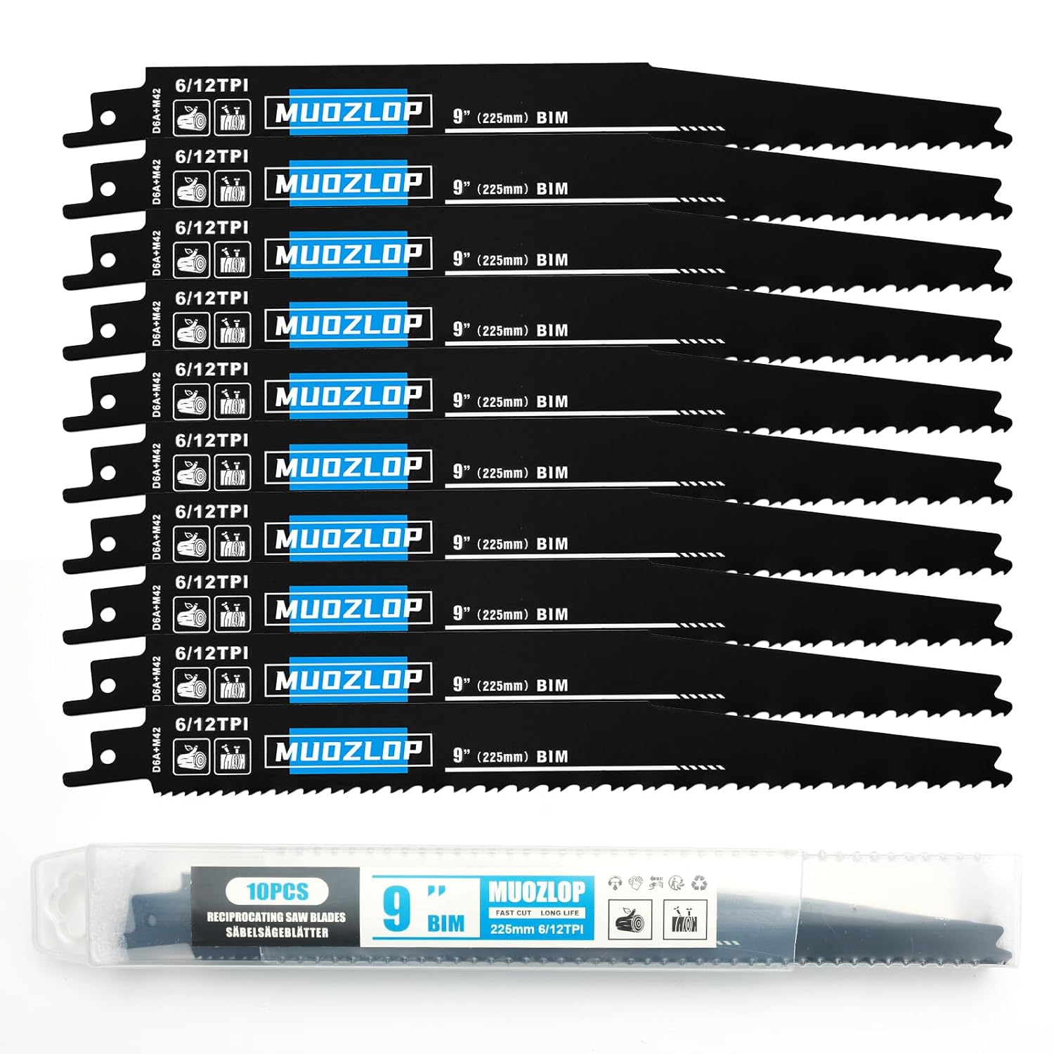 10 Pack 9 inch Reciprocating Saw Blades Set,6/12 TPI High Carbon Saw Blades, Woodcutting Saw Blades with Organizer Case (10, 6/12TPI/225mm)