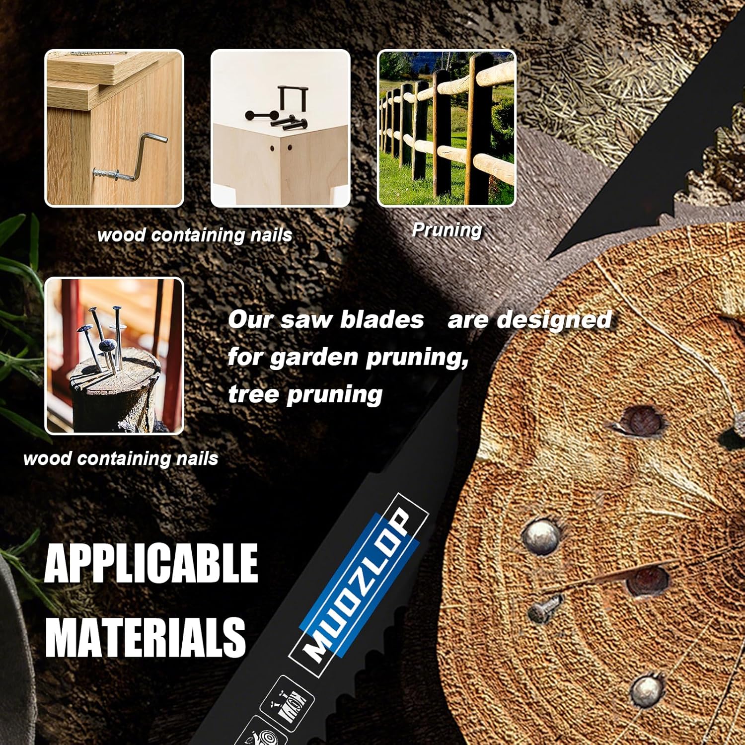 - Multifunctional: 6/12 TPI reciprocating saw blades provide superior cutting performance at both wood and nail-embedded wood, when we trim wood containing nails such as abandoned fences, no longer have to worry about nail damage to the saw blade or frequently replace different kinds of reciprocating saw blades