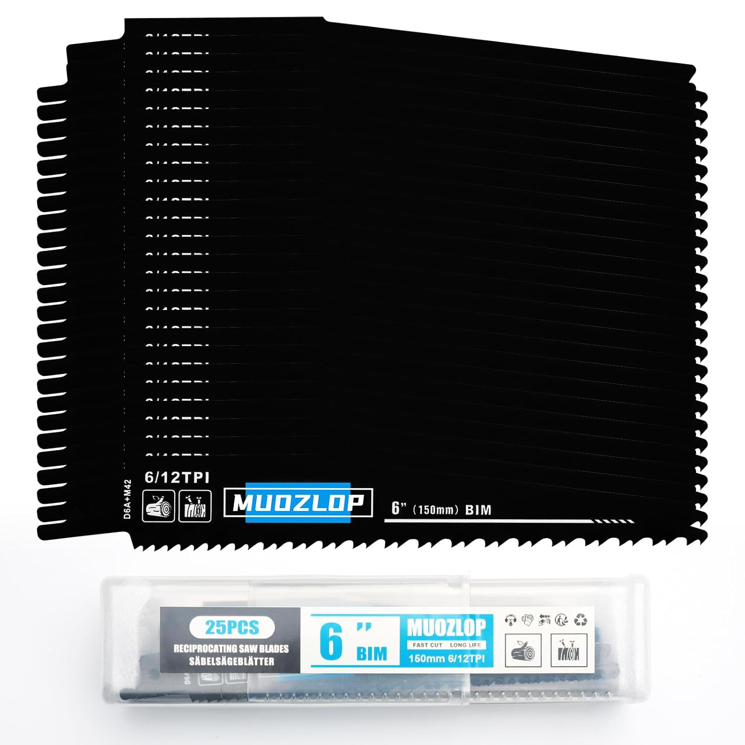 25 Pack 6inch Reciprocating Saw Blades Set,6/12TPI High Carbon Saw Blades, Metal Saw Blades with Organizer Case (25, 6/12TPI/150mm)
