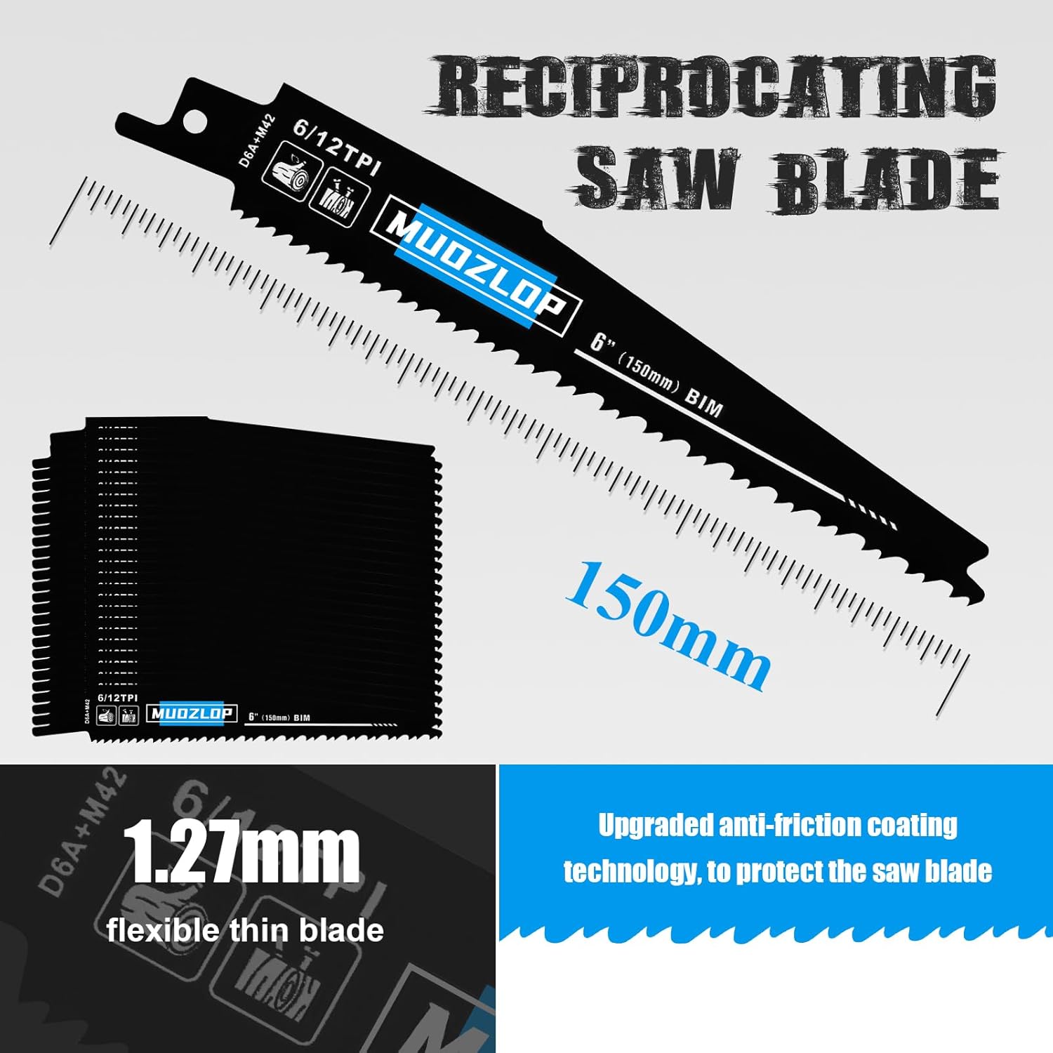 - Multifunctional: 6/12 TPI reciprocating saw blades provide superior cutting performance at both wood and nail-embedded wood, when we trim wood containing nails such as abandoned fences, no longer have to worry about nail damage to the saw blade or frequently replace different kinds of reciprocating saw blades