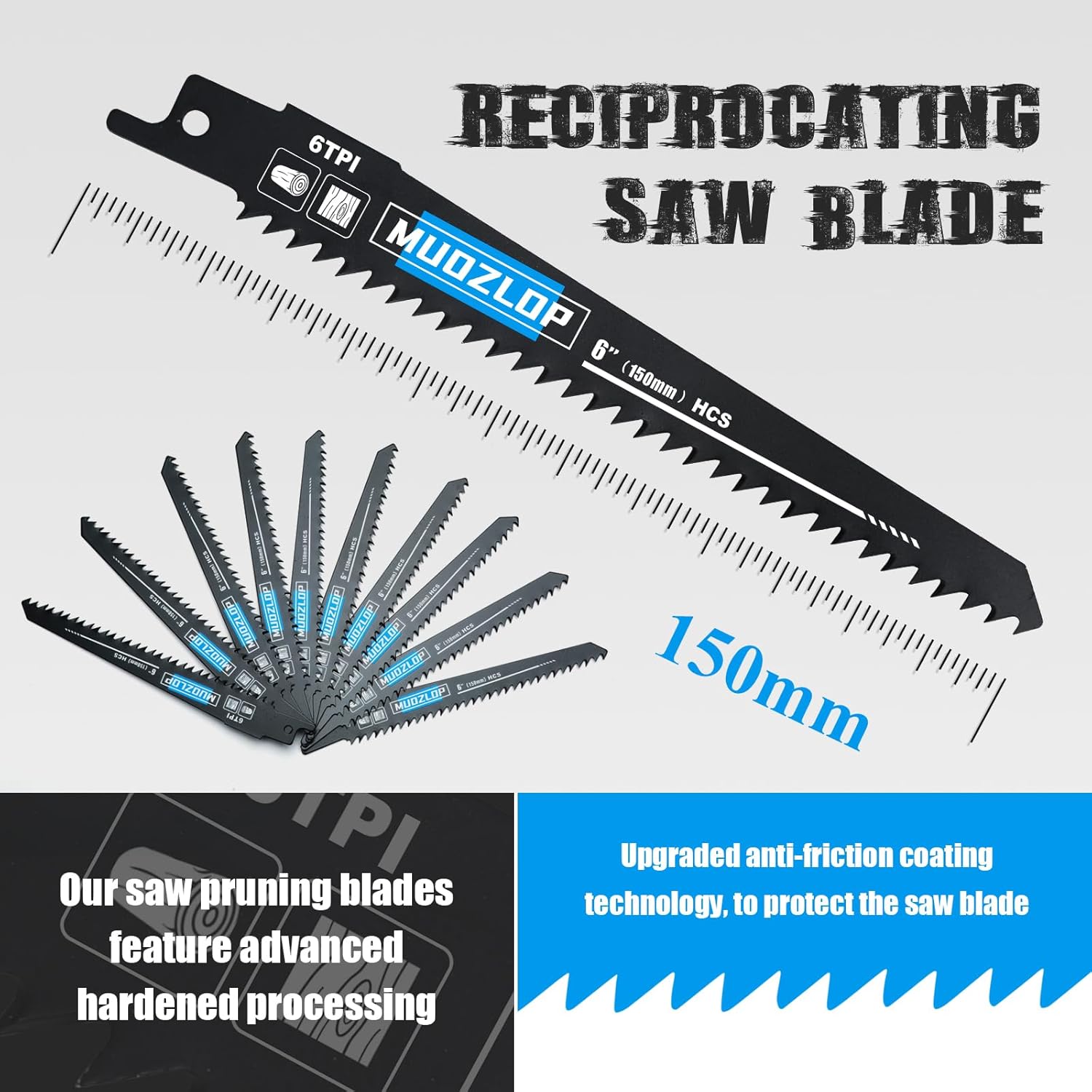 10Pack 6 inch Reciprocating Saw Blades Set,6TPI High Carbon Saw Blades, Woodcutting Saw Blades with Organizer Case (10, 6TPI/150mm)