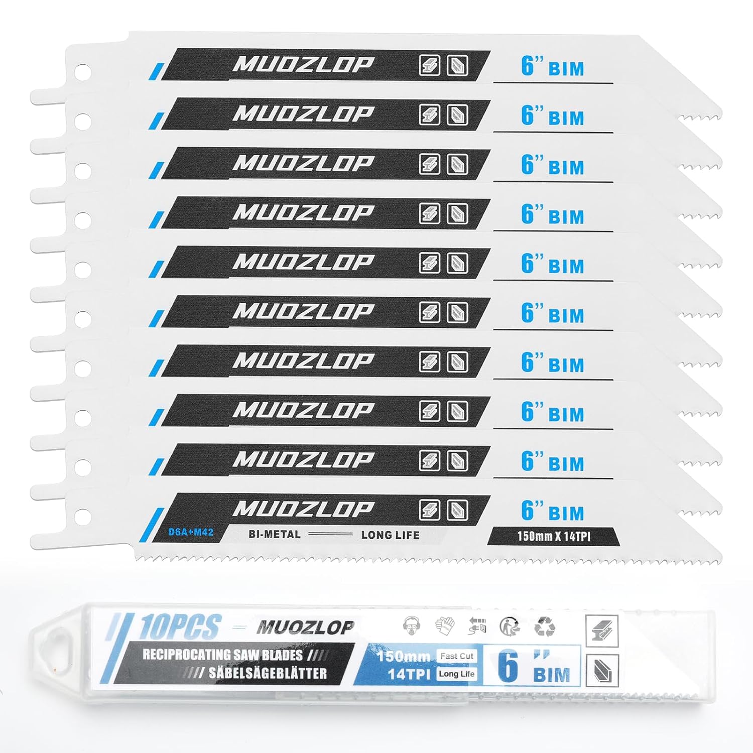 10 Pack 6 inch Reciprocating Saw Blades Set,14 TPI High Carbon Saw Blades,Metal Saw Blades with Organizer Case (10, 14TPI/150mm)