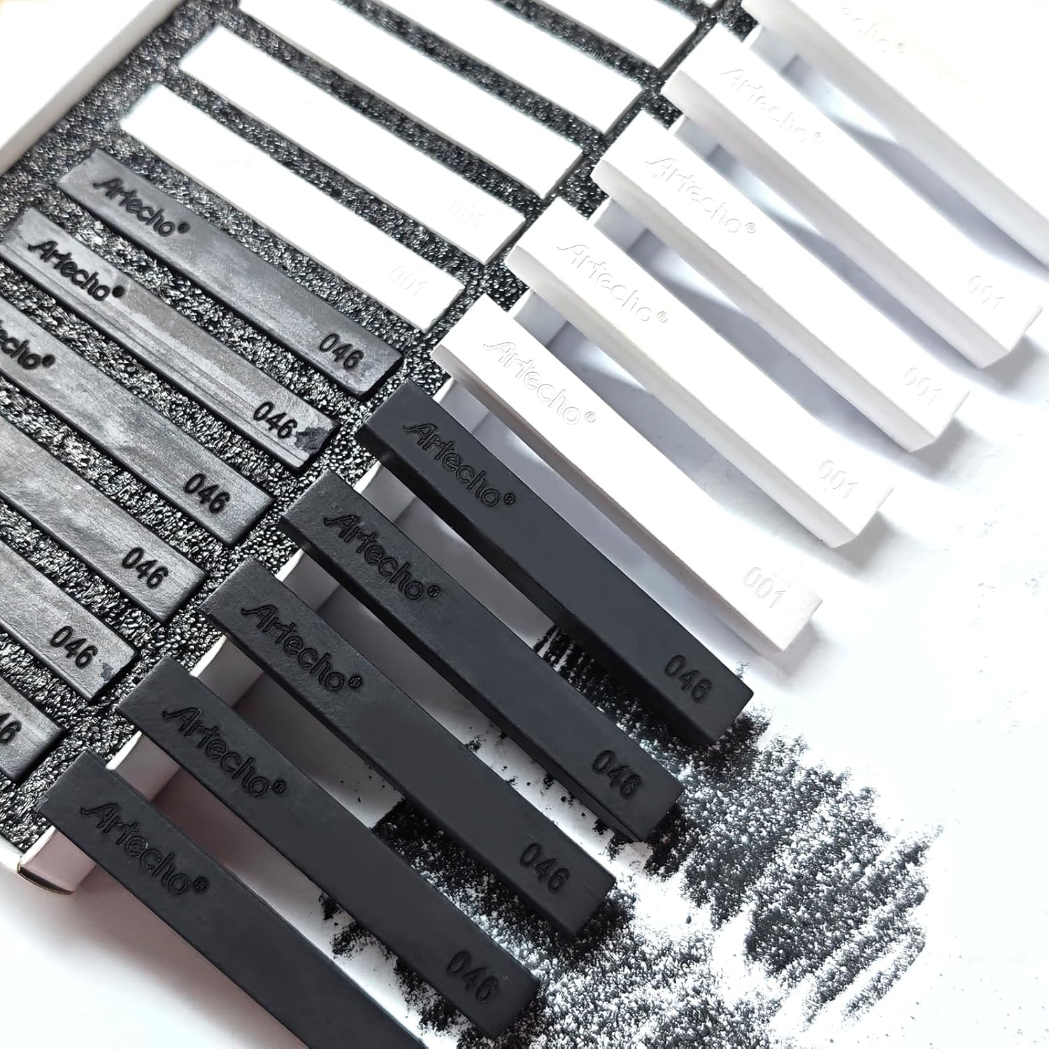 Artecho 12pcs Soft Pastels, 6 White and 6 Black Soft Pastels, Square Chalk for Drawing, Blending, Layering, Shading