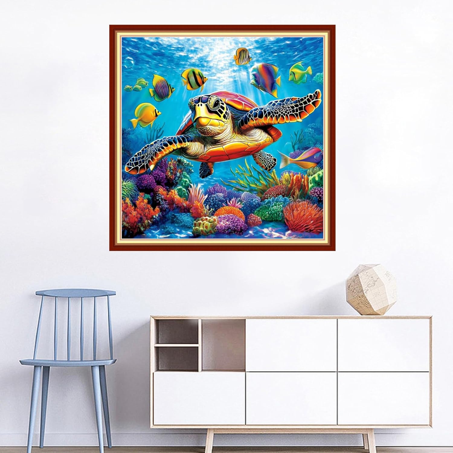 Joyhoor Cross Stitch Kits for Beginners Stamped Cross-Stitch Supplies Needlework preprint Embroidery Kits for Adults DIY Needlepoint Kits Embroidery Patterns 11CT-Underwater sea Turtle 18x18 inchs