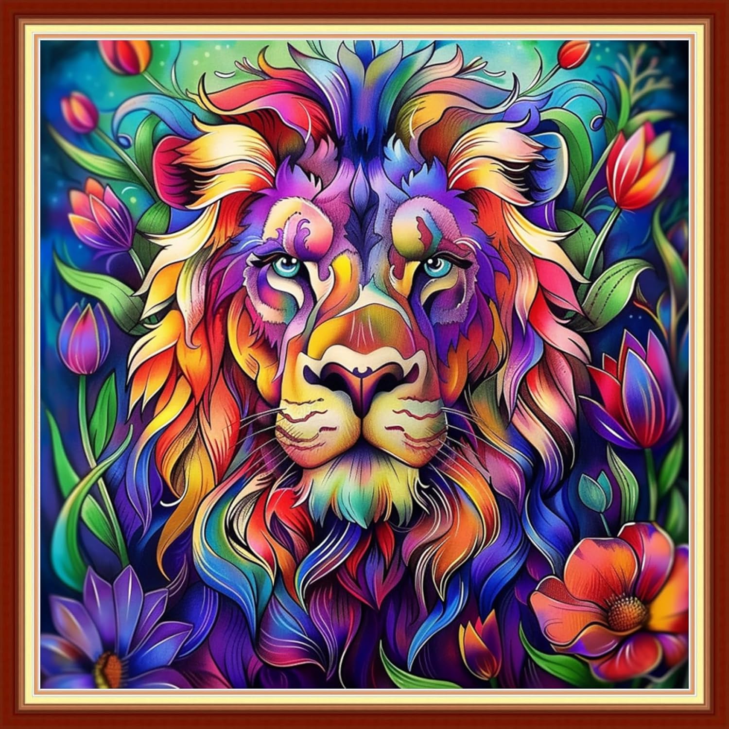 Joyhoor Cross Stitch Kits for Beginners Stamped Cross-Stitch Supplies Needlework preprint Embroidery Kits for Adults DIY Needlepoint Kits Embroidery Patterns 11CT-Colorful Lion 18x18 inchs