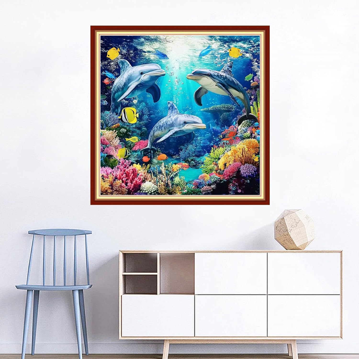 Joyhoor Cross Stitch Kits for Beginners Stamped Cross-Stitch Supplies Needlework preprint Embroidery Kits for Adults DIY Needlepoint Kits Embroidery Patterns 11CT-Underwater World 18x18 inchs