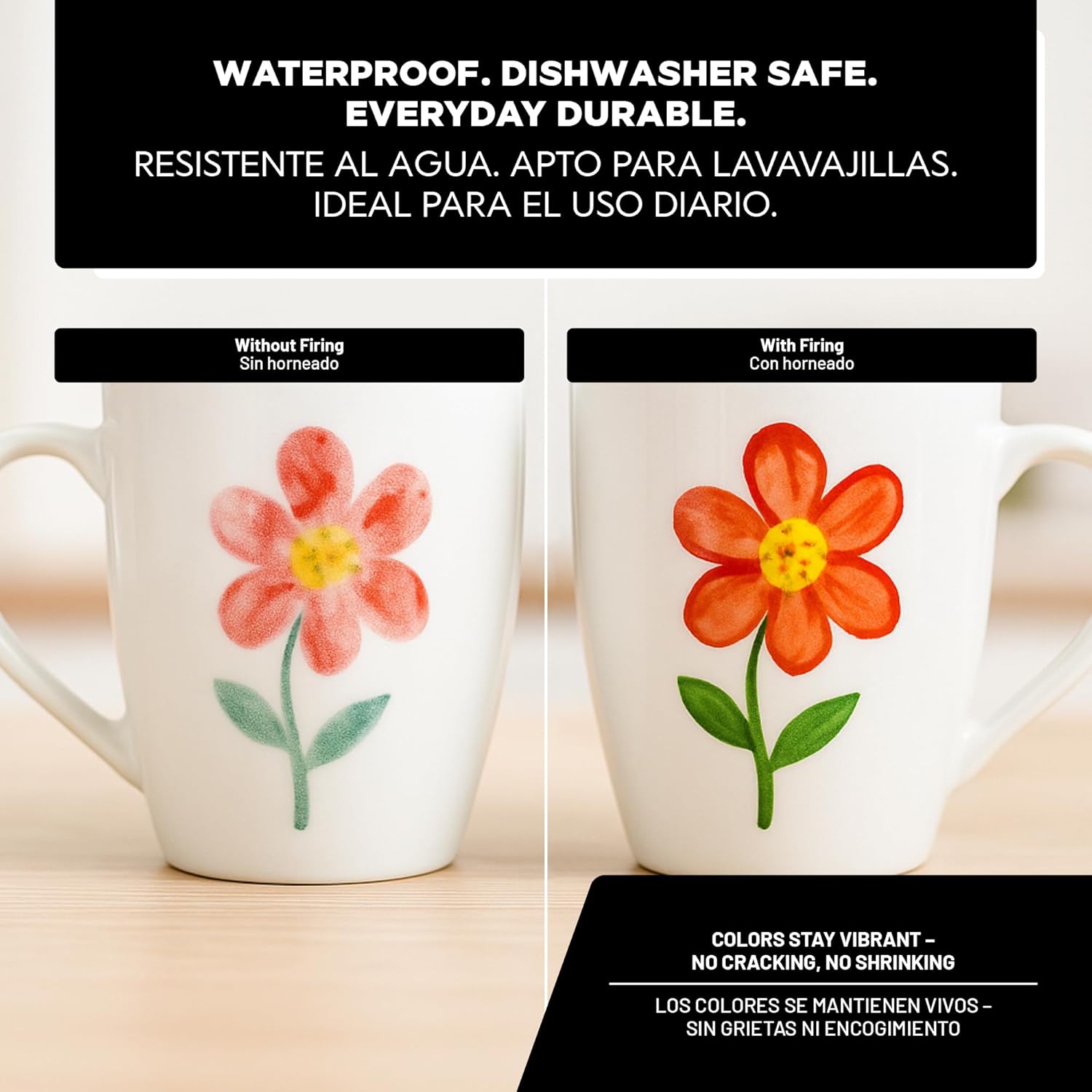 - Quick Baking for Permanent Results: Bake at 320°F (160°C) for 90 minutes to set the paint, creating durable and dishwasher-safe designs.