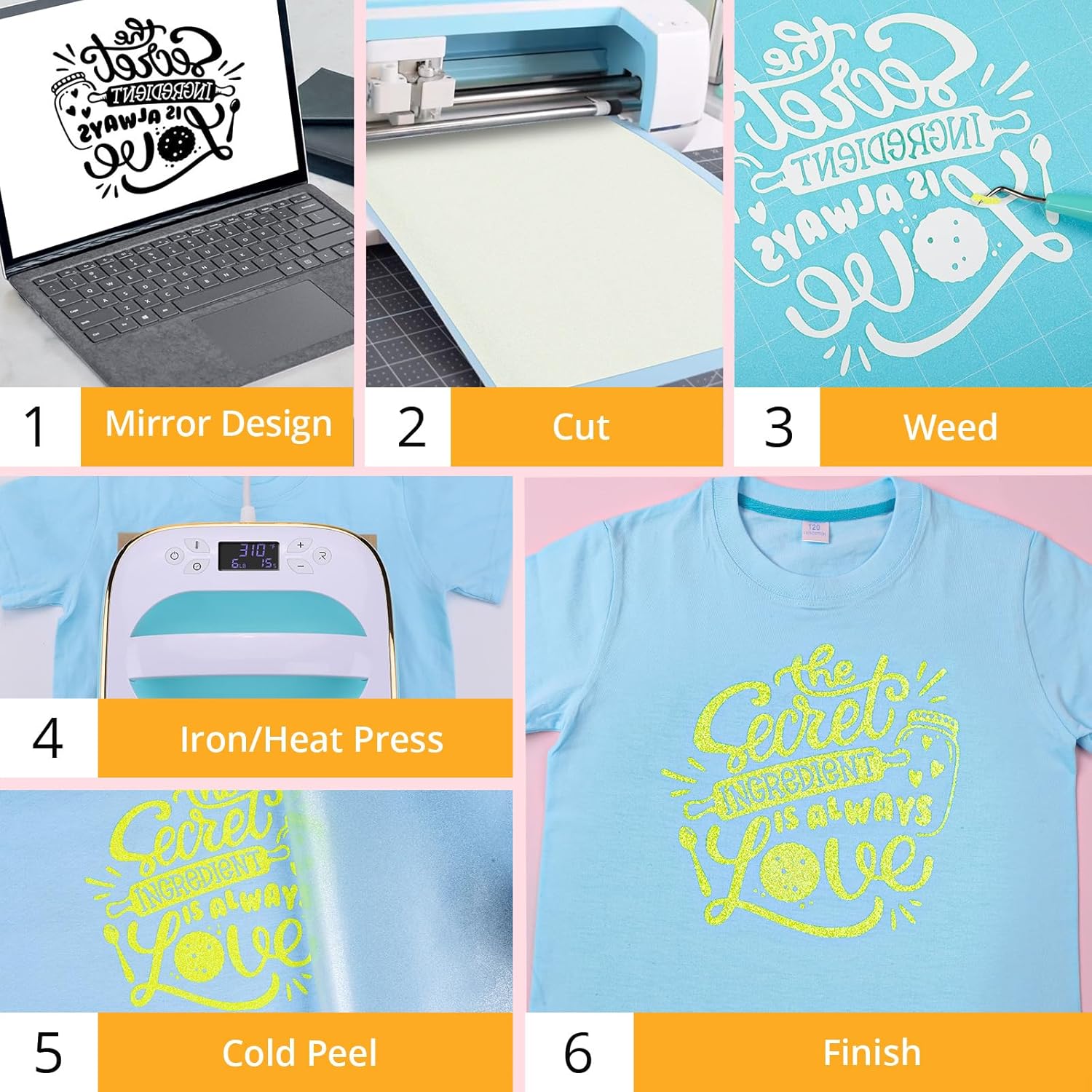 - 【Easy to Cut & Weed & Transfer】Our HTVRONT glitter htv is thicker and smooth. With its good cutting application characteristics, you can get your designs to perfection without wasting excess glitter heat transfer vinyl. At the same time, our glitter iron on vinyl is very sensitive to temperature and pressure, just follow the instructions and you can easily transfer the vinyl to the fabric.