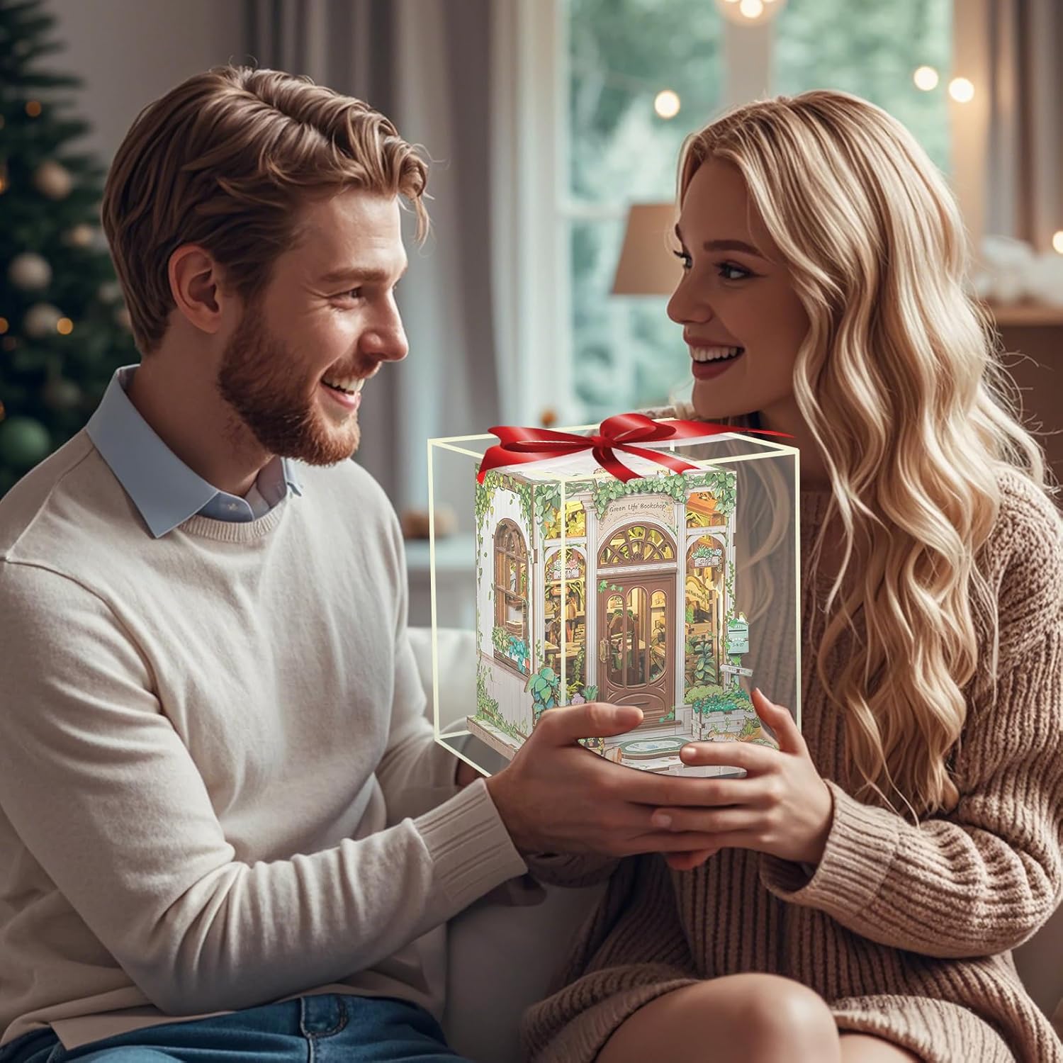 - 【Book Nook Kit for Adult - GREEN LIFE BOOKSHOP】The booknook is made from wood, it is high quality and durable. Every piece is laser-cut and pre-colored, no need to paint it. There is also a step by step instruction to follow it when set up. It is combination of a puzzle, a scale model and it is also a shared teen and adult bonding project