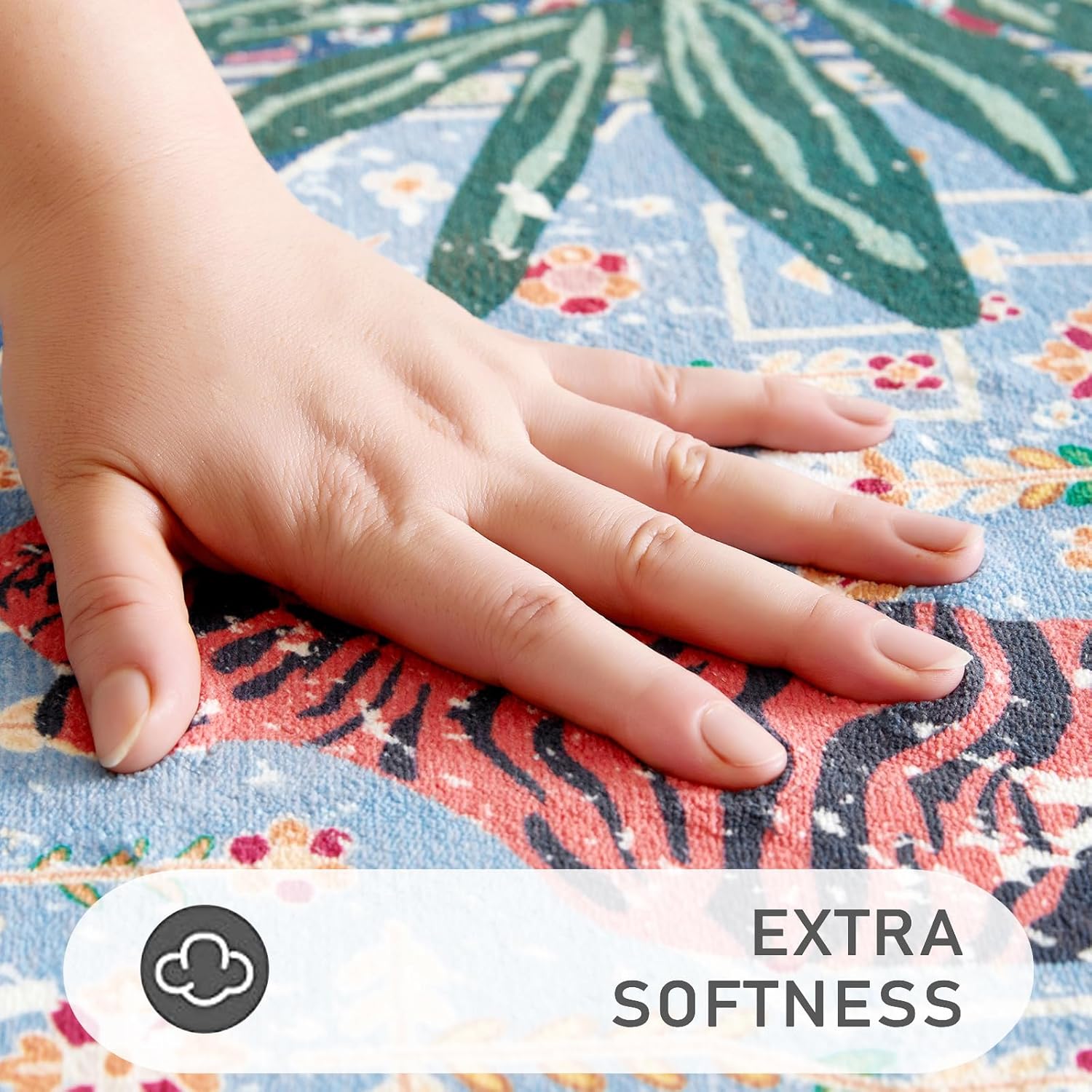 Washable Blue Rugs Thin Oriental Boho Vintage Tropical Jungle 9x12 Area Rugs for Bedroom Kitchen Dining Living Room Office Distressed Indoor Large Carpet