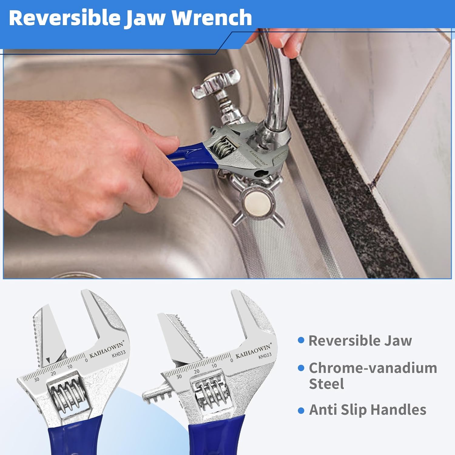 - 【Dual-Purpose Adjustable Wrench】 The 6-inch wrench functions as both a pipe wrench and an adjustable wrench, offering versatility for plumbing and general repair tasks.